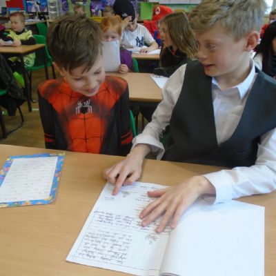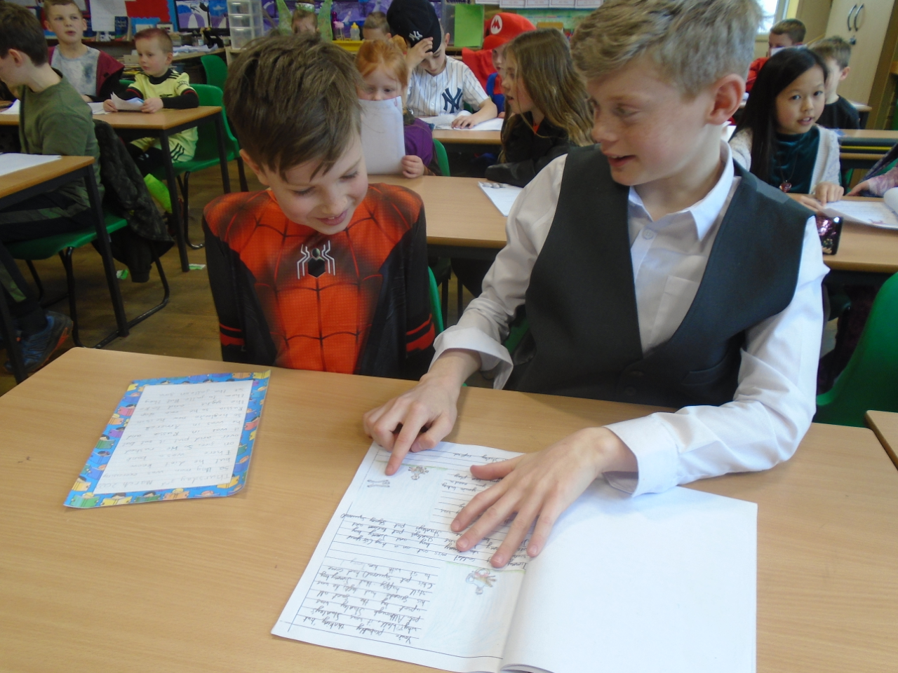 It was wonderful to see everyone in costume as their favourite book characters.  The children have been working hard at school to complete a writing project: where they were paired up with another pupil in the school and wrote each other a story.  This afternoon the children return to their partners and read them the story they had written for each other.  We also enjoyed a whole school parade in our costumes.