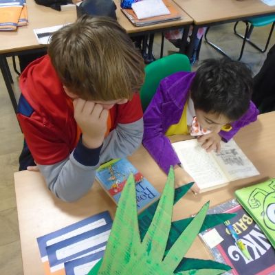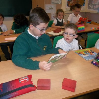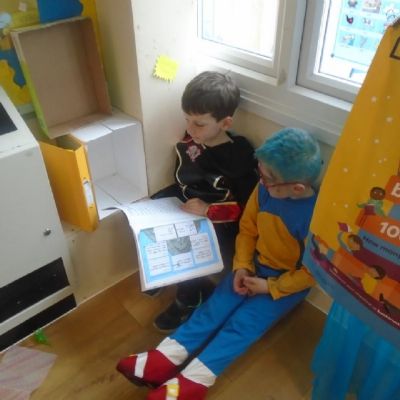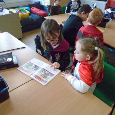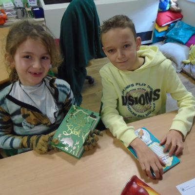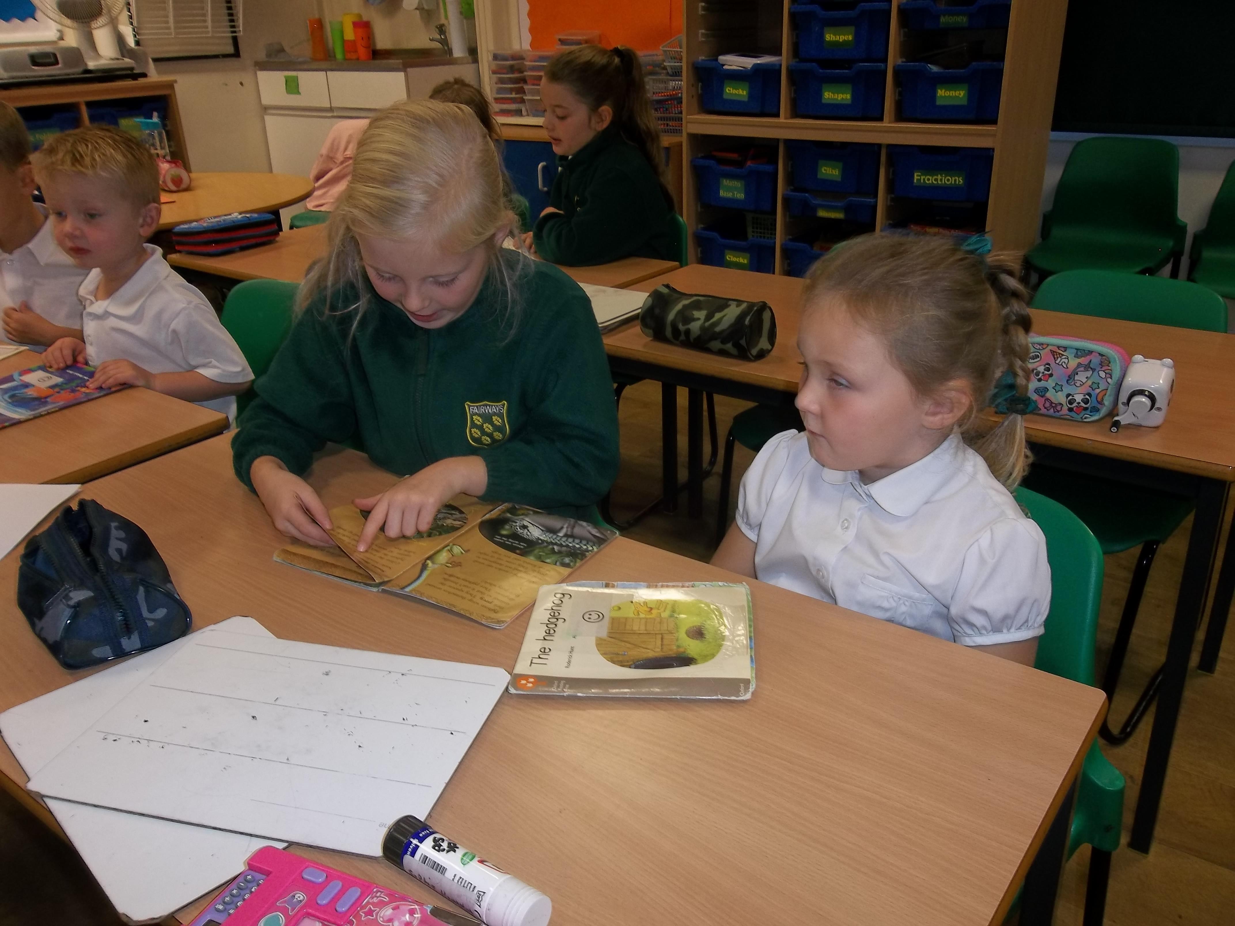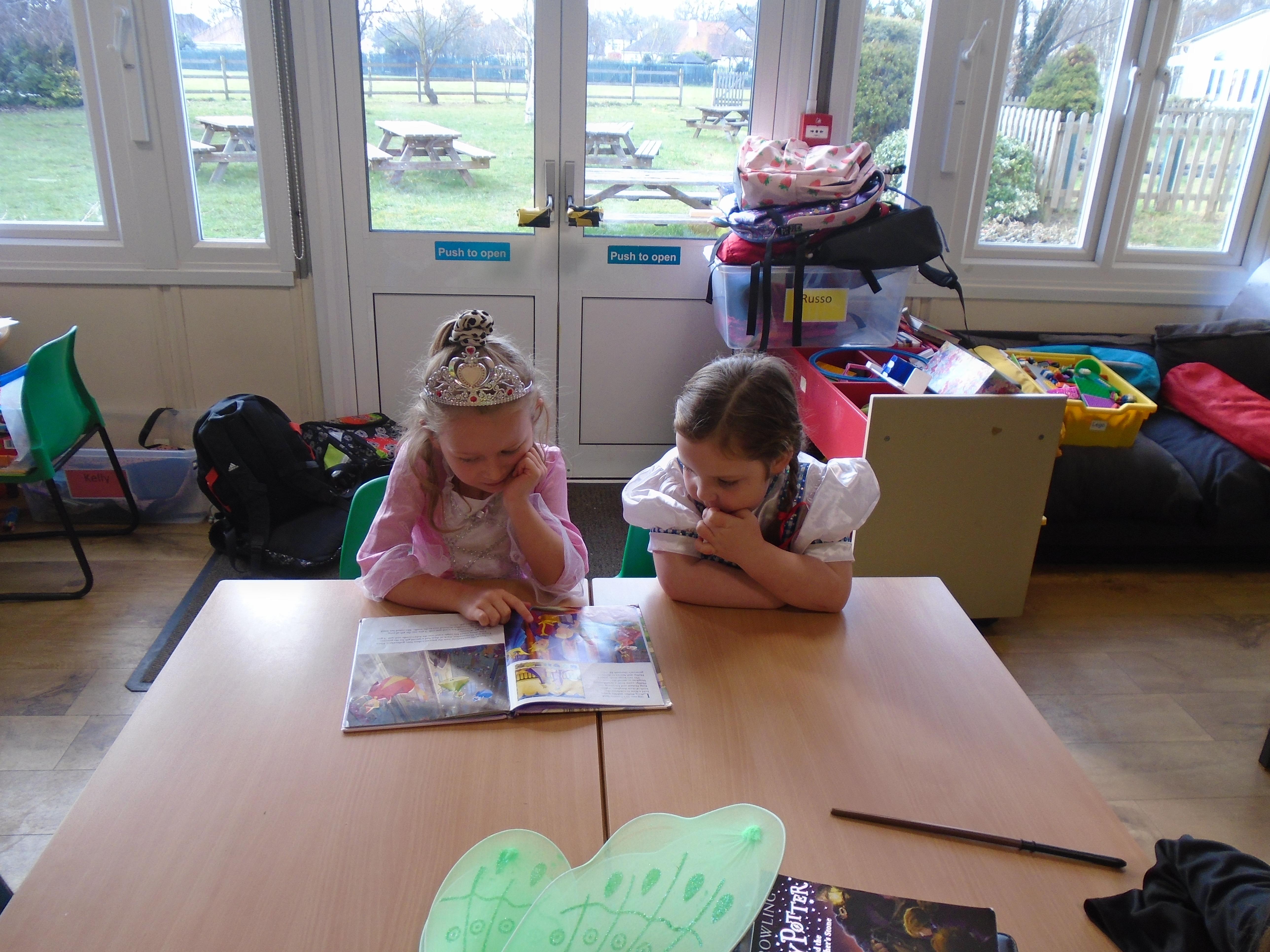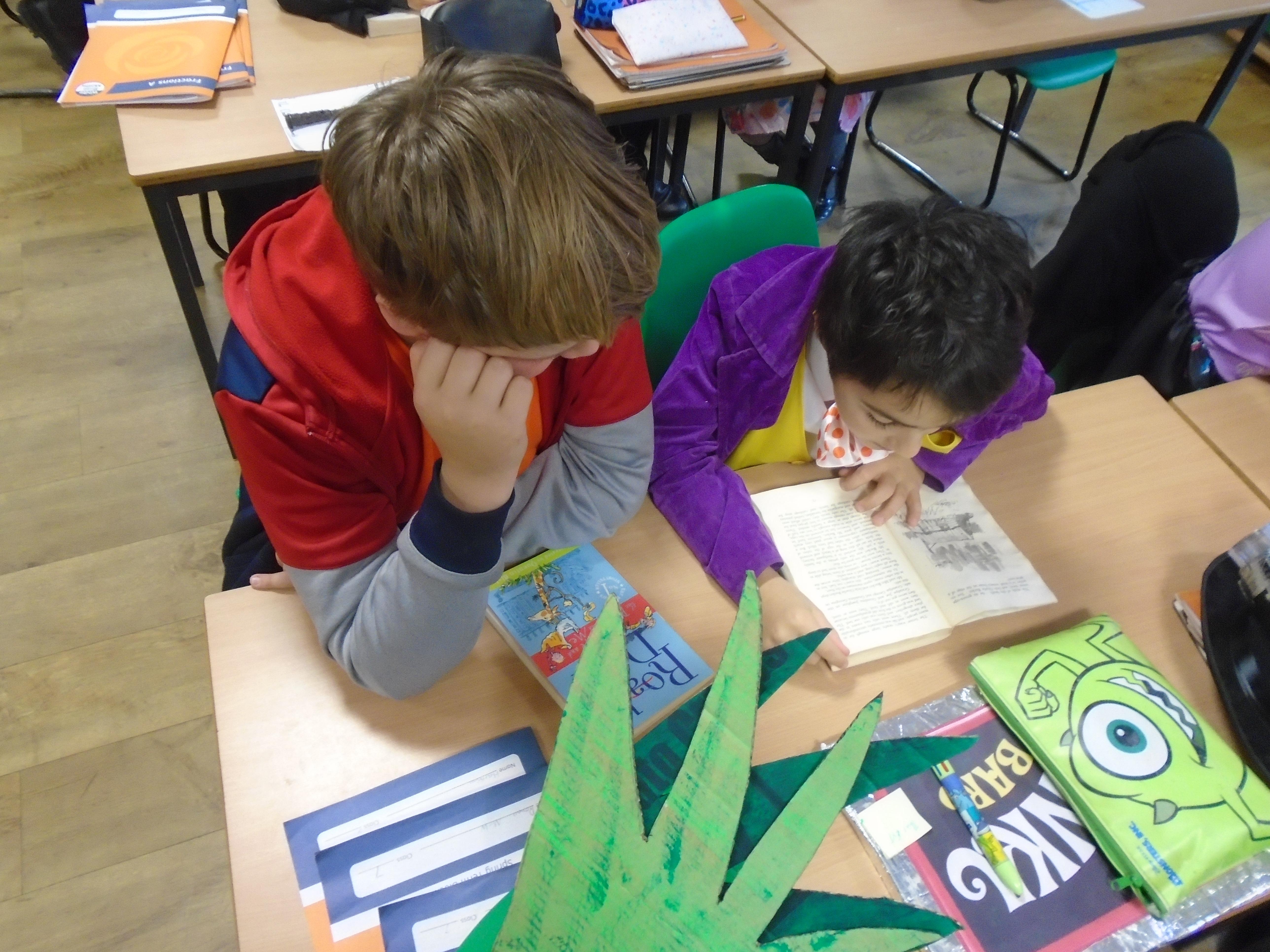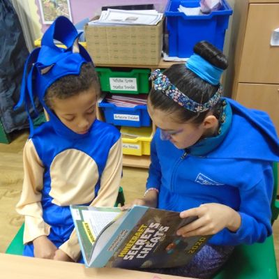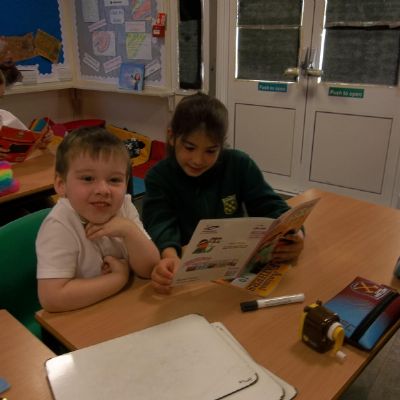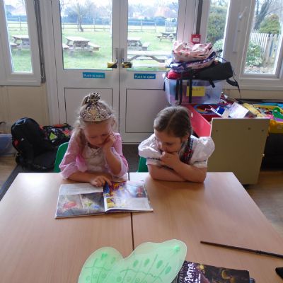 This morning, the whole school took part in a shared reading session. Every child in every class paired up with another child of a different age to share a book. Each child took it in turn to read to their partner.