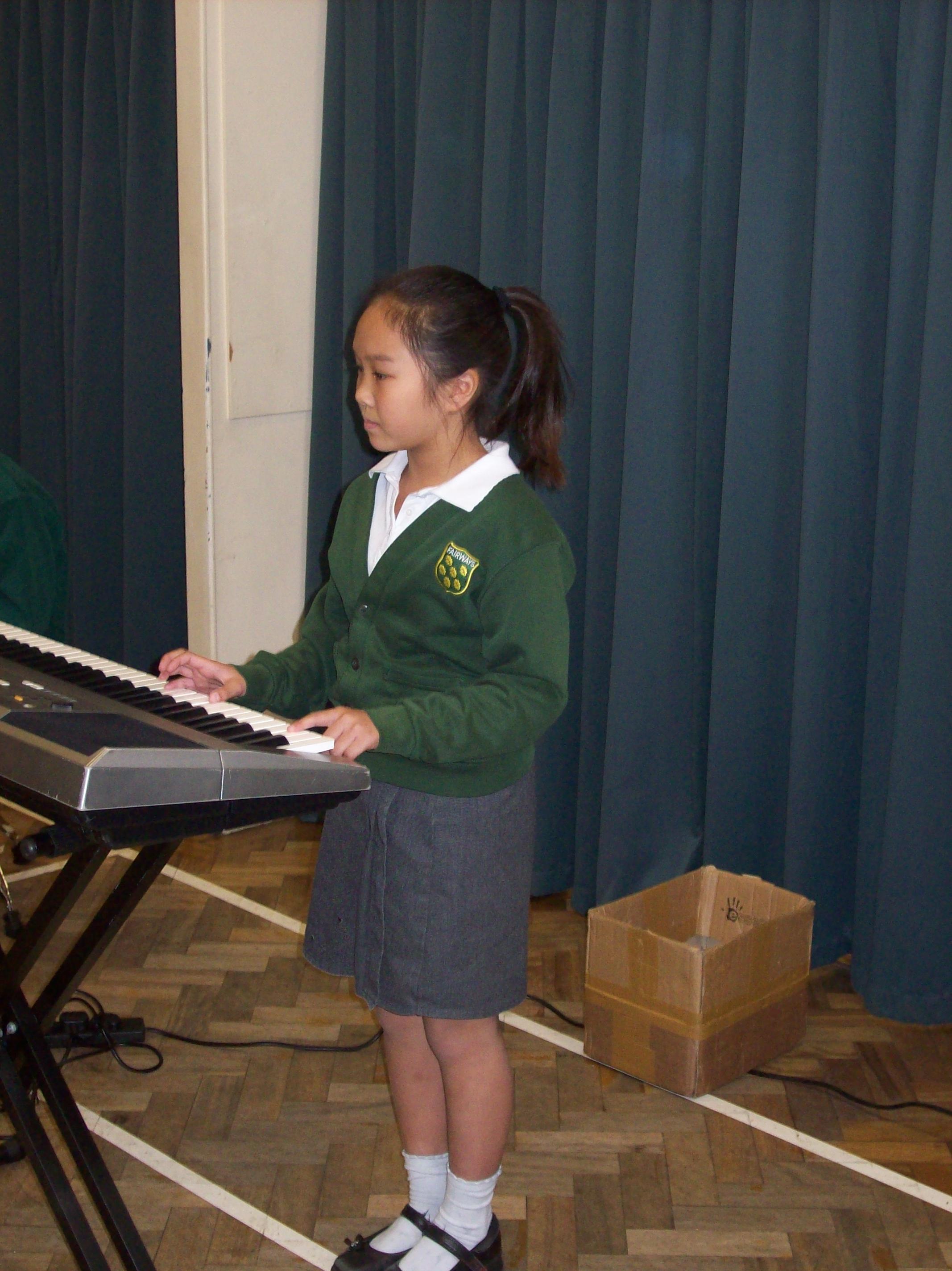 Some of the children played the instruments as part of a band while the rest of the children sang and played imaginary guitars or keyboards.