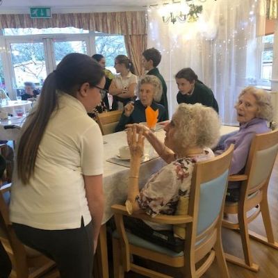 After singing the children went round and spoke to the residents - they were so polite and seemed               genuinely interested in talking.  The girl who was chatting to my Mother was so sweet and seeing my Mother’s face light up was something I’ll always remember.  It’s quite difficult talking to people with Dementia but your pupils were so relaxed about it and just took it in their stride.