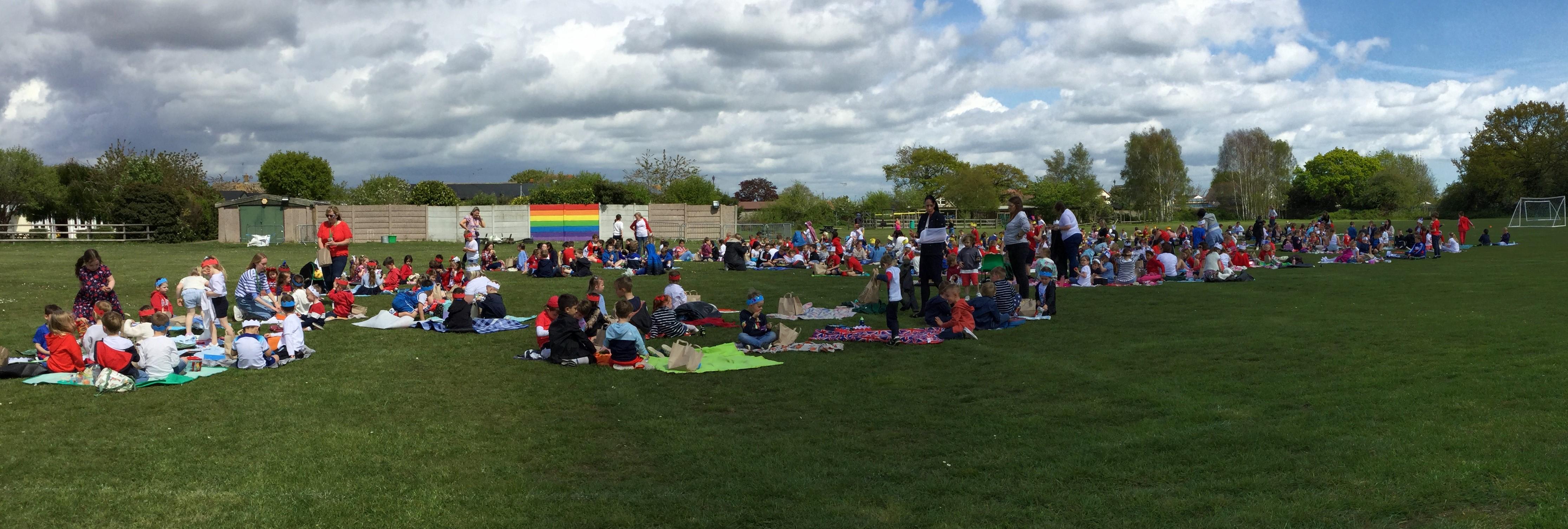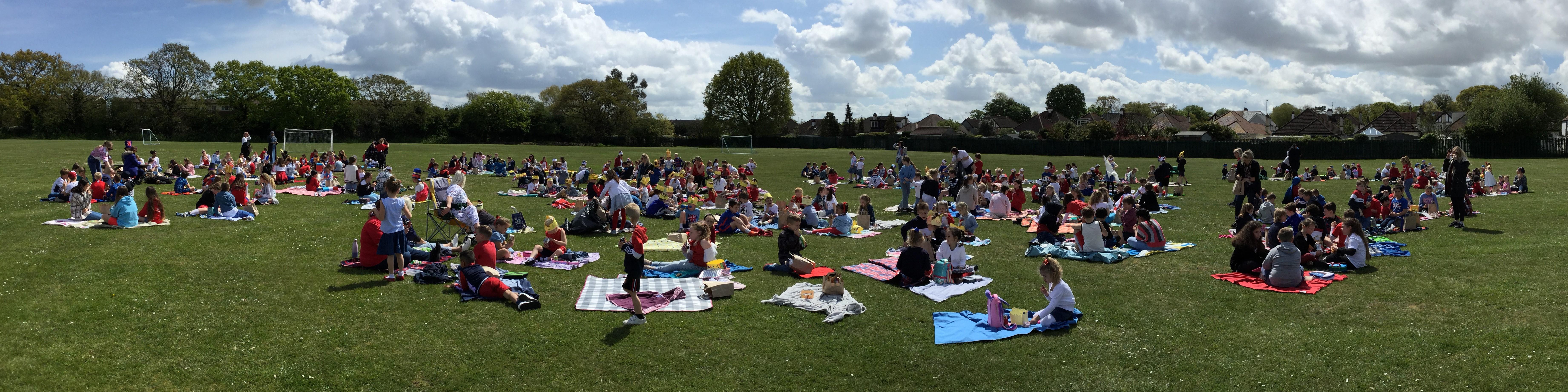 Despite a forecast of rain, the sun was shining at lunchtime which meant that we were all able to have a picnic on the field.