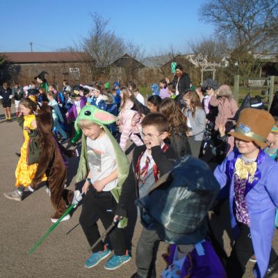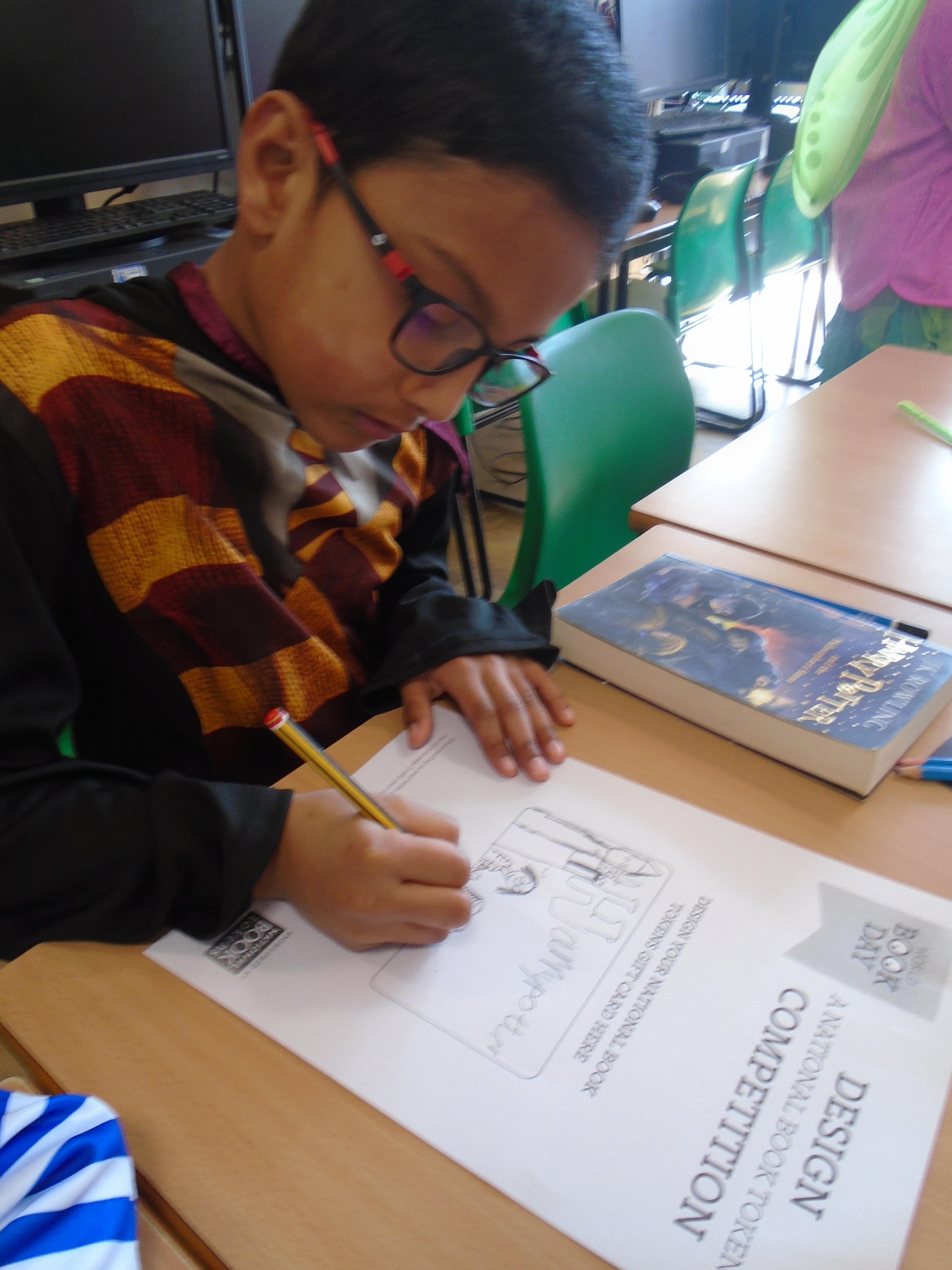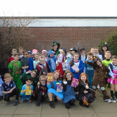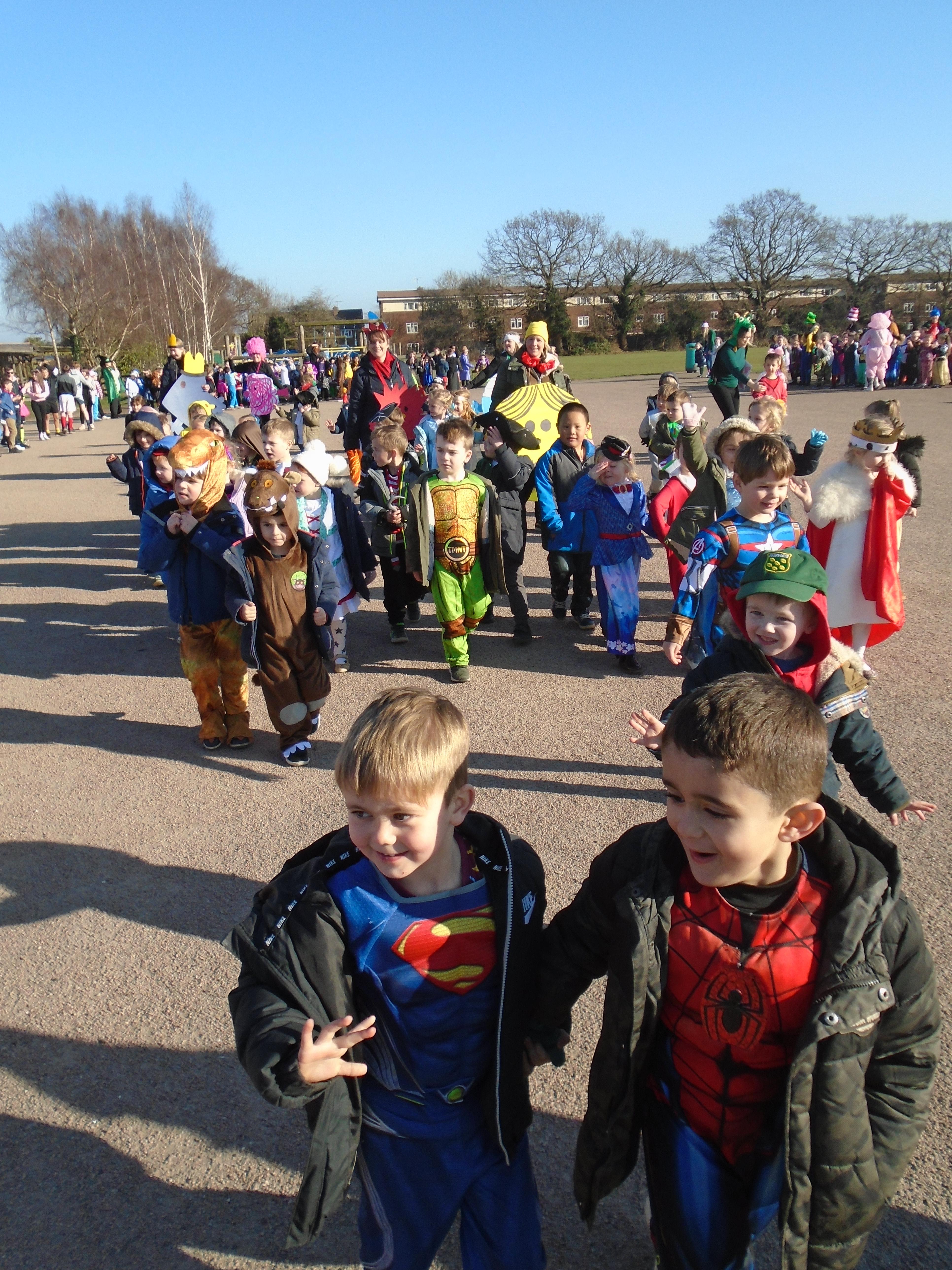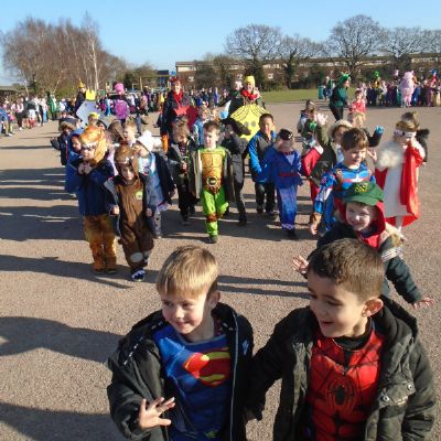 What a fantastic buzz around school we had today.  The children (and staff) looked fantastic in their costumes.   A huge thank you to everyone for making such a great effort. We had shared reading sessions with children in classes reading to others and talking about their favourite book characters. Children were busy trying to solve the mystery of who the Masked Readers were and also took part in a book token design competition. The day  culminated with a parade!