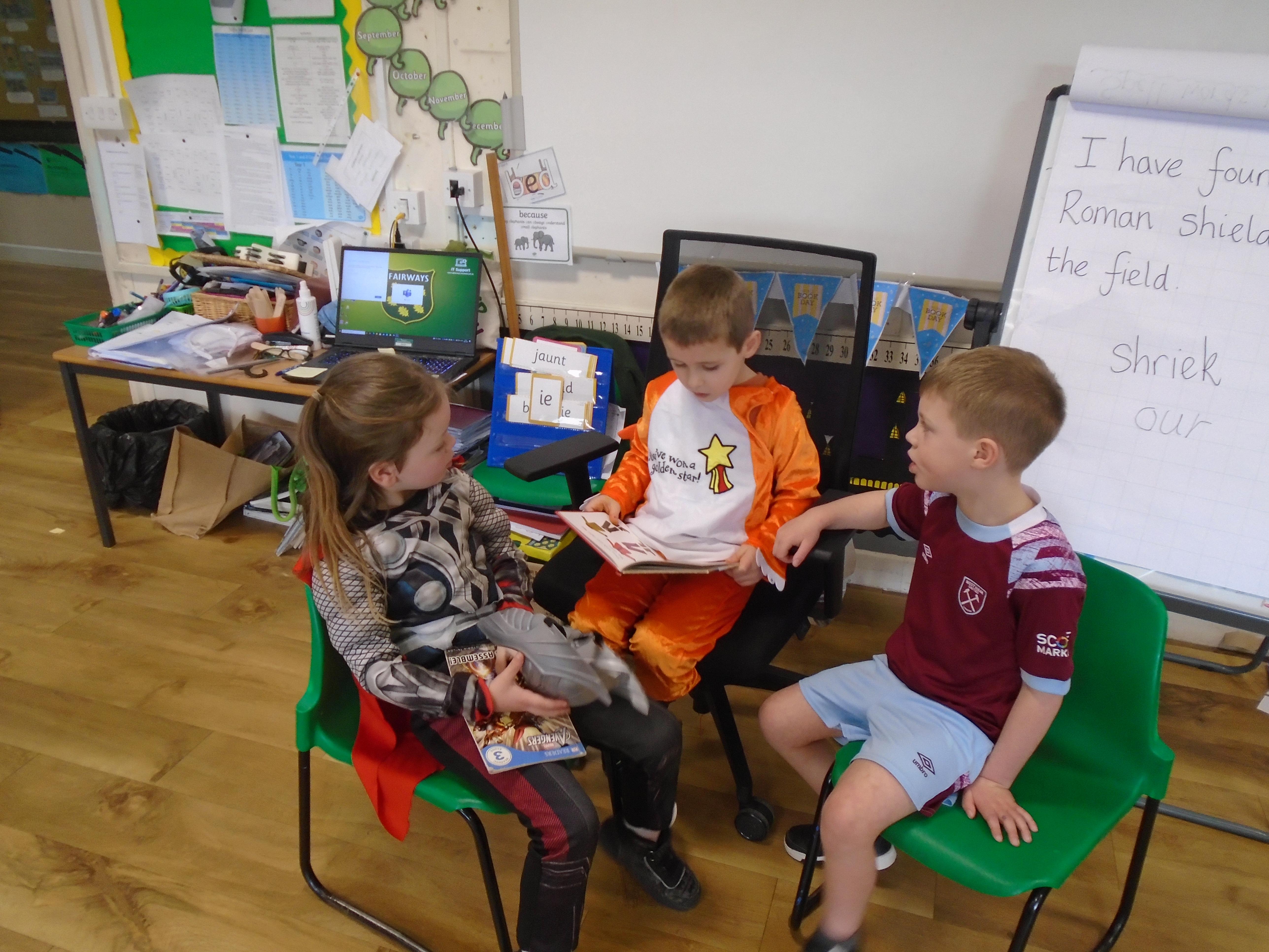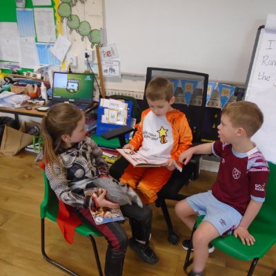 Our class swapped with Year 1 and here you can see some of our class reading with their younger schoolmates." - Mrs Walker (Year 4 Teacher)