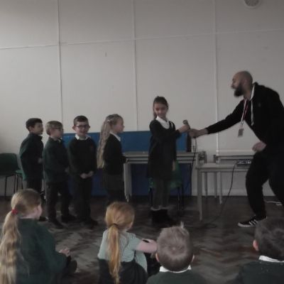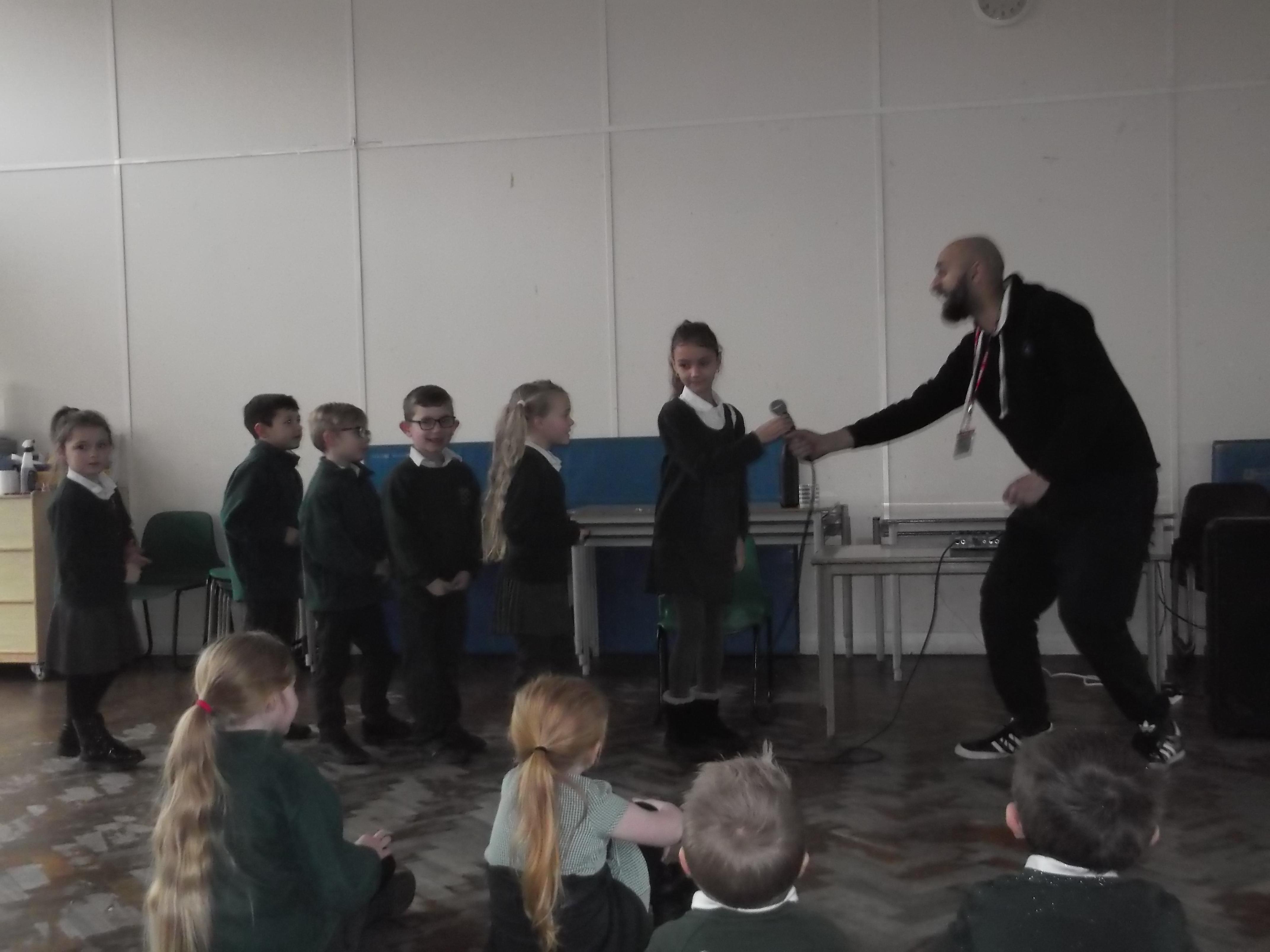 Some children were invited to take part in a Beatboxing workshop. Danny from School of Beatbox came in to work with them. They learnt the basic sounds needed to create a drum beat, and some special effects too. The children were amazed by the sounds that Danny could create with his voice.