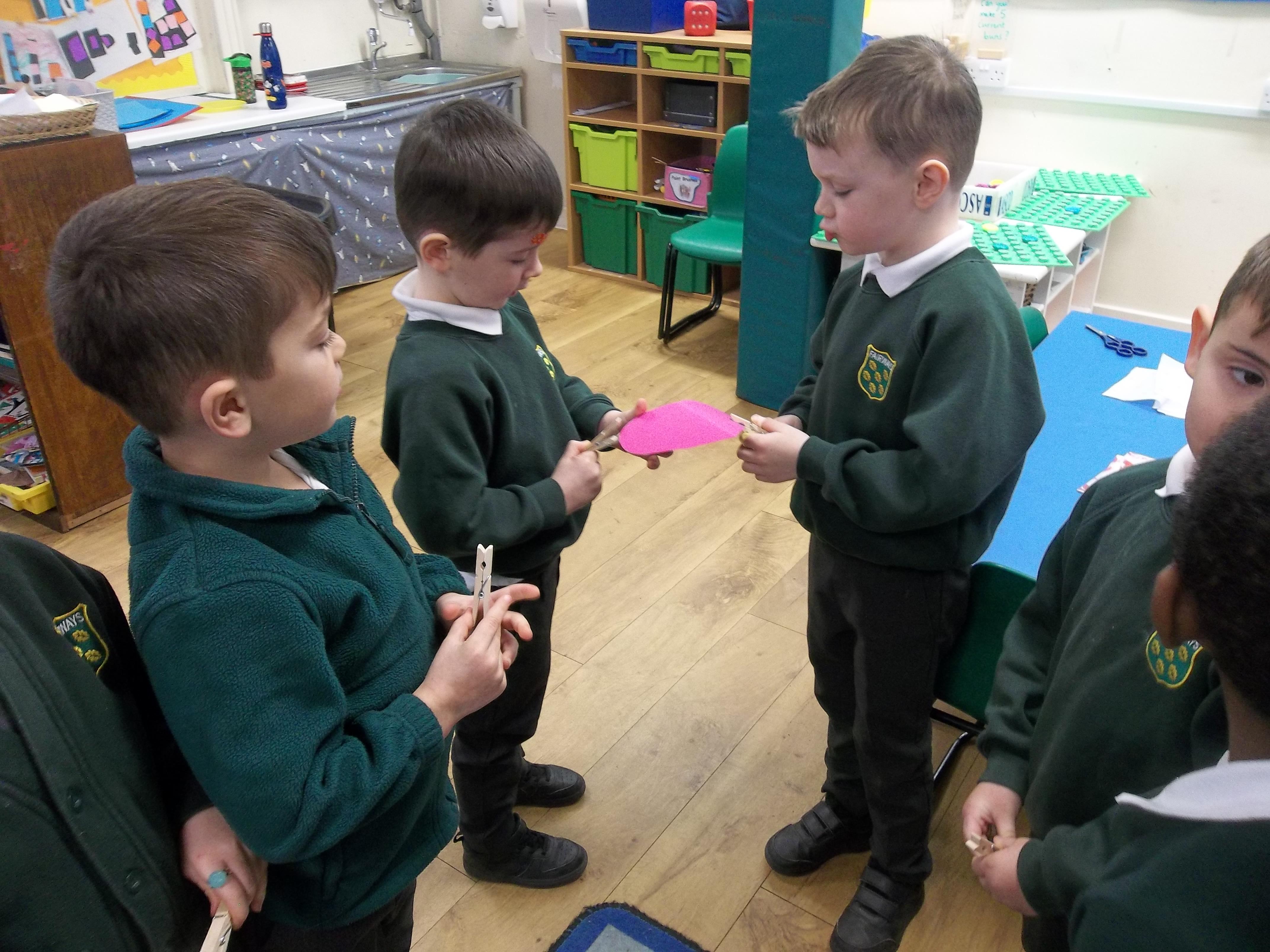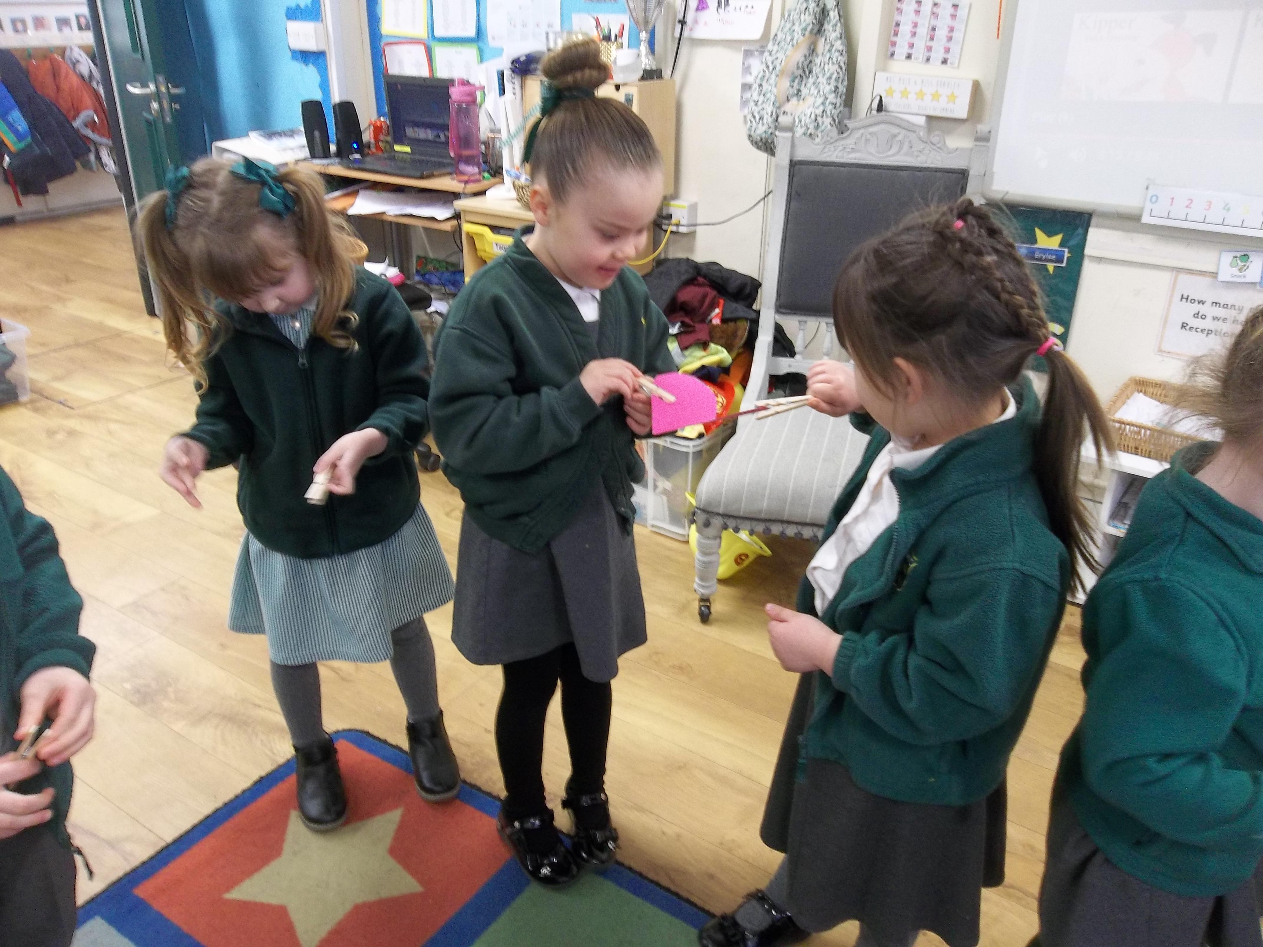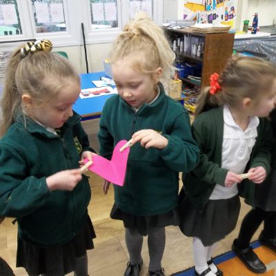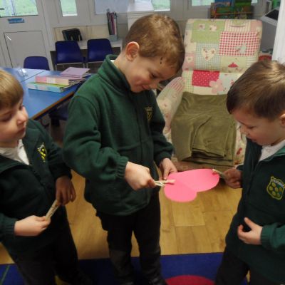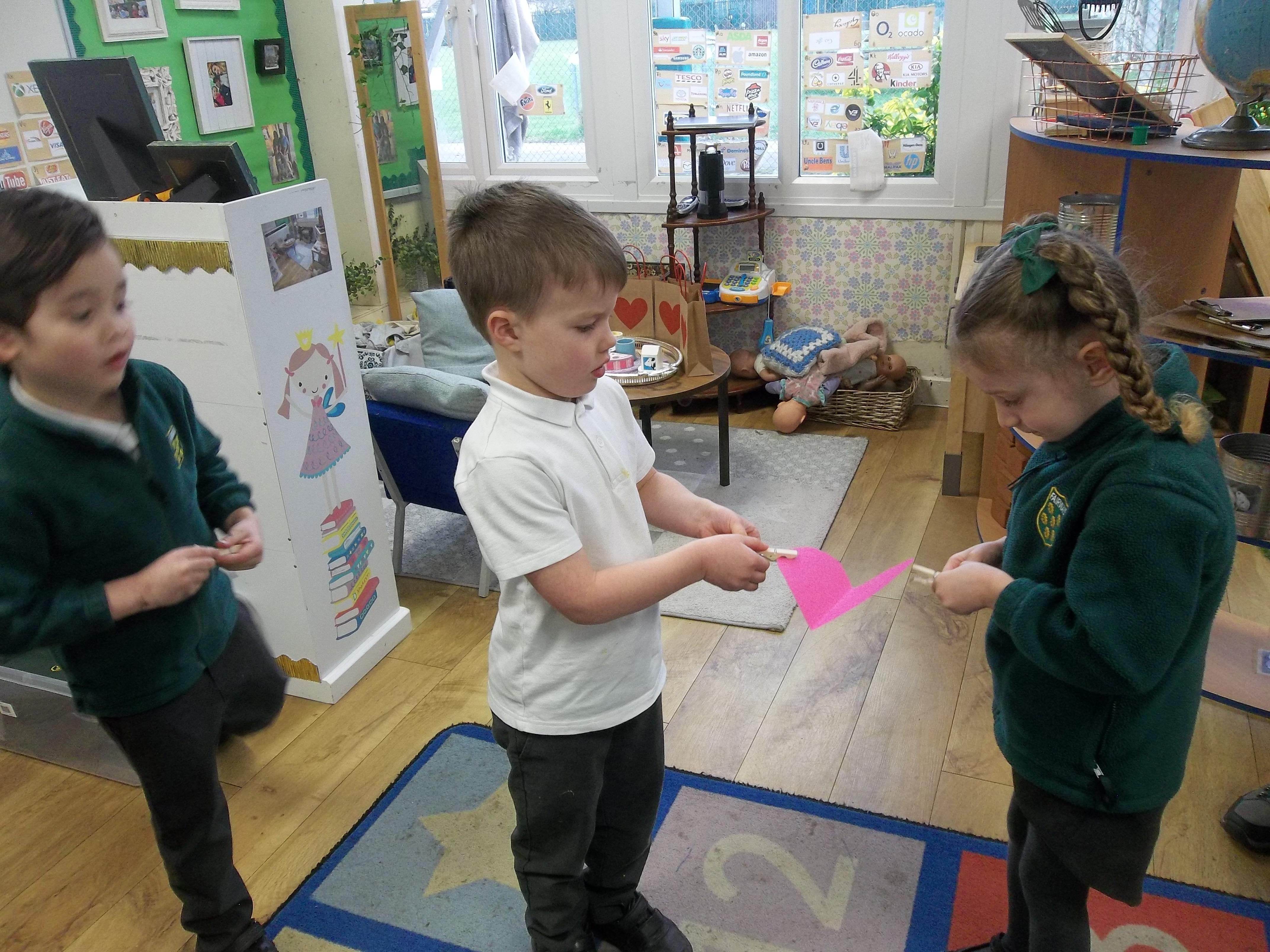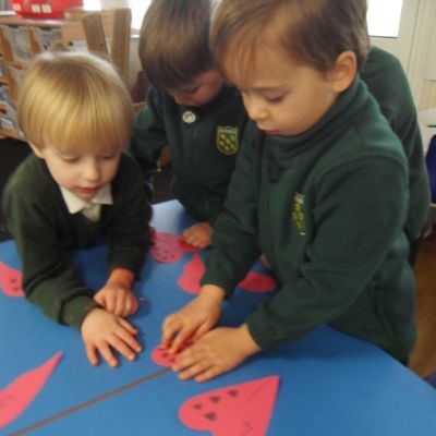 We have been feeling the love in Reception today. Children played a team building game which worked on their communication as well as their fine motor skills. The children were asked to pass a cardboard heart around the circle just using a peg! The first few times were a bit tricky but the children soon realised they had to work together to ensure the heart didn't fall! We have also written down what we love and matched the number of hearts to the correct number!