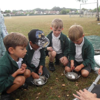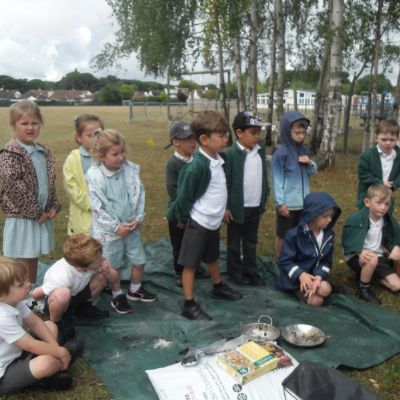 We were lucky enough today to have some forest school sessions led by one of our school governors, Caroline Nutting. The children took part in lots of different activities including making seed bombs, collecting berries and leaves and printing them onto cloth and making fire using flint and steel. The children behaved so well and really enjoyed this experience.
