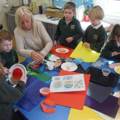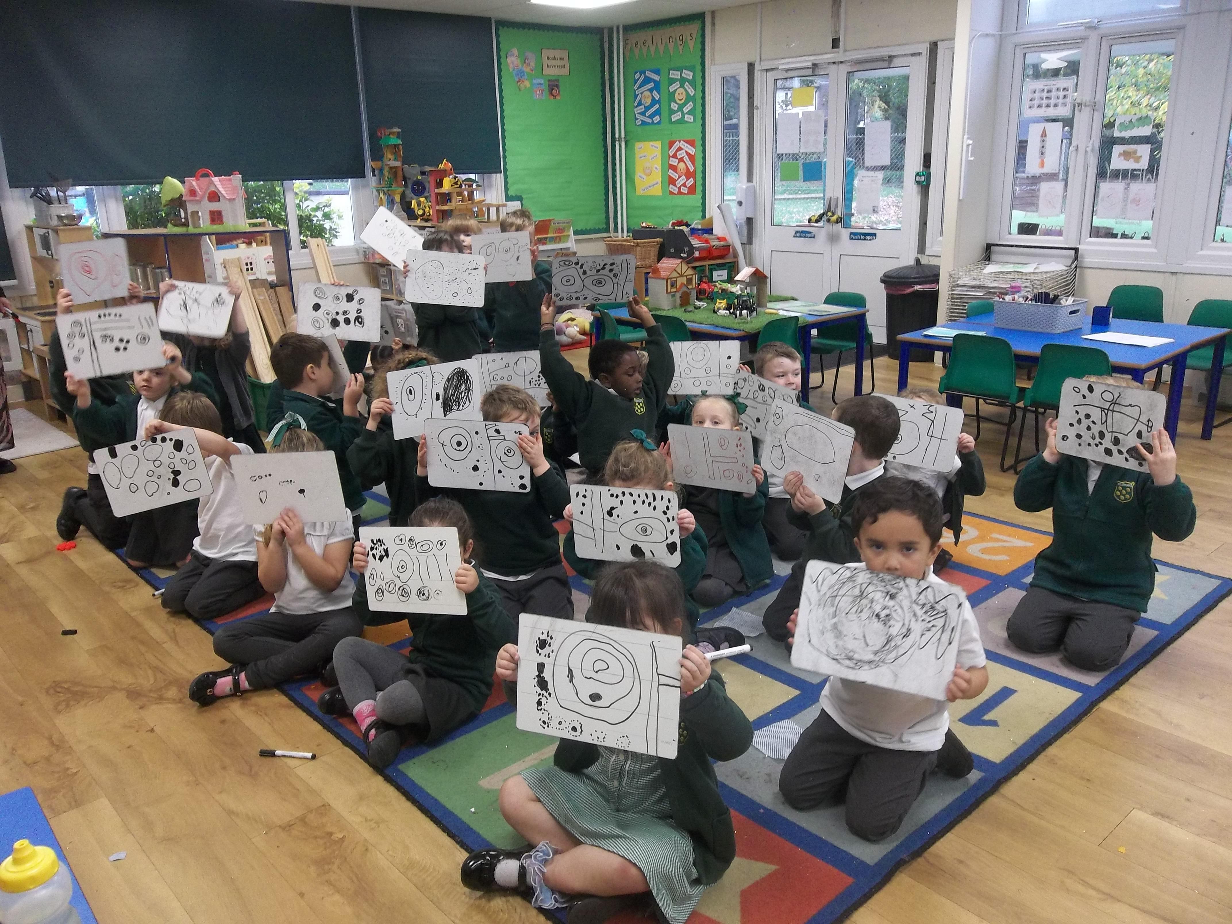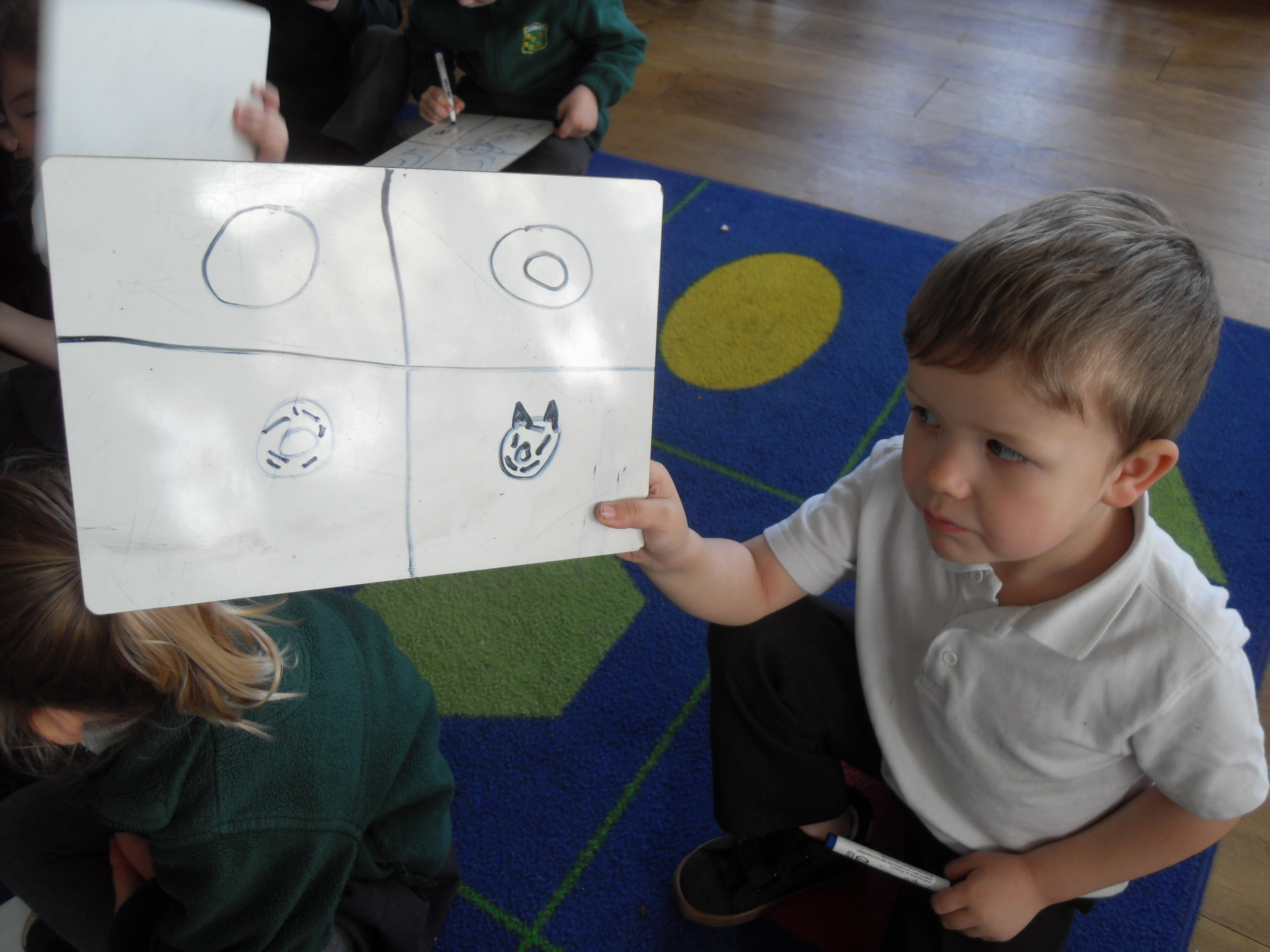 In Maths, we have been learning about circles. Today we looked at some artwork by Fiona Rae and used this as an inspiration for our own drawings. Class 1 chose to draw some abstract pictures and Class 2 used circles to create pictures of familiar things such as snowmen and the sun. As well as supporting our Maths and Art development, this activity also helped to develop our fine motor skills and pencil control.