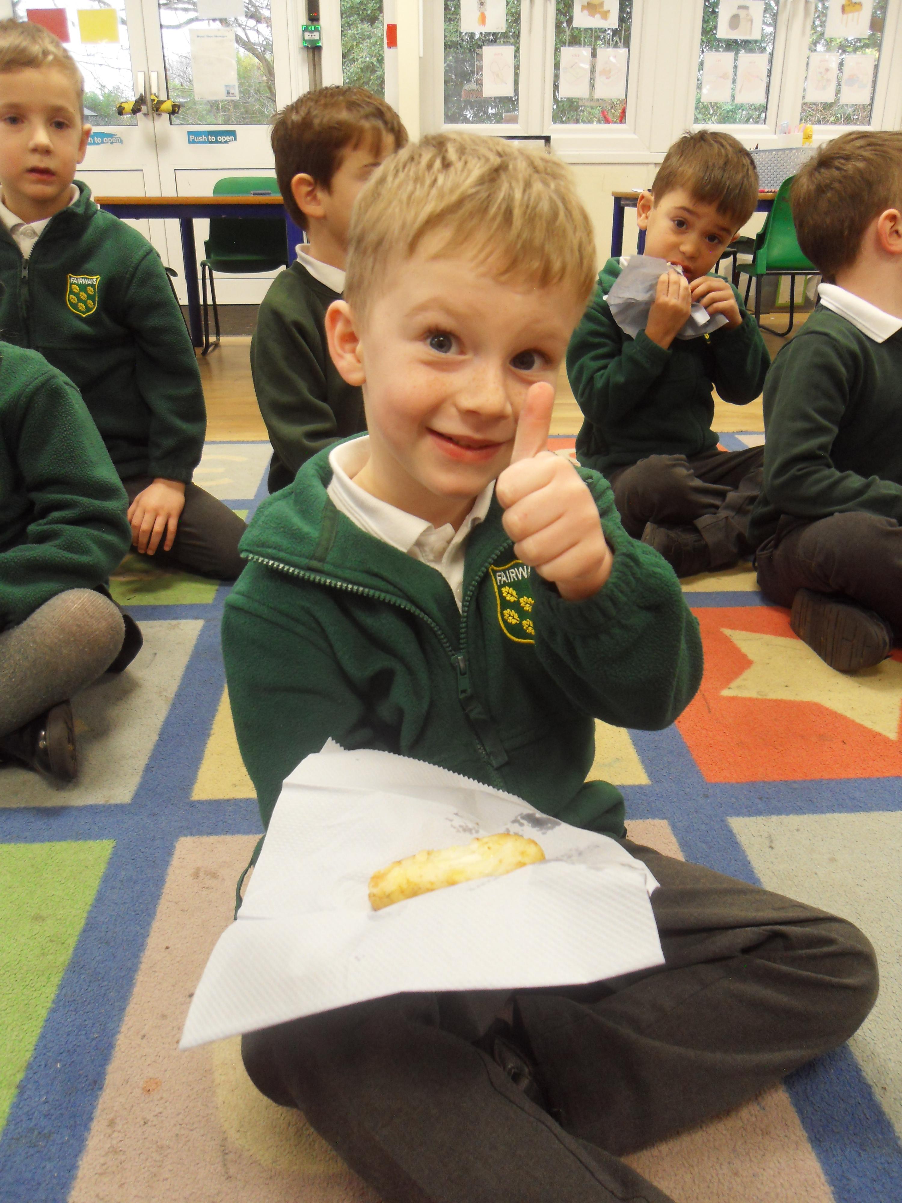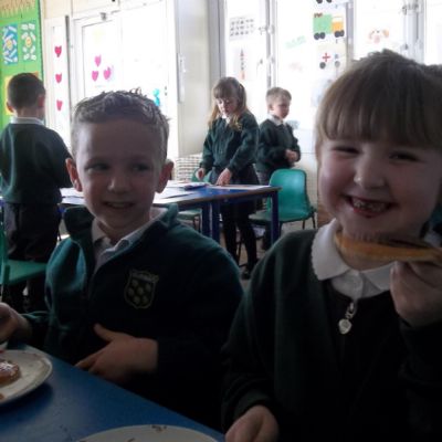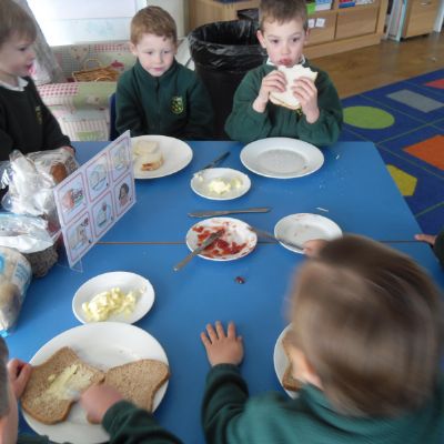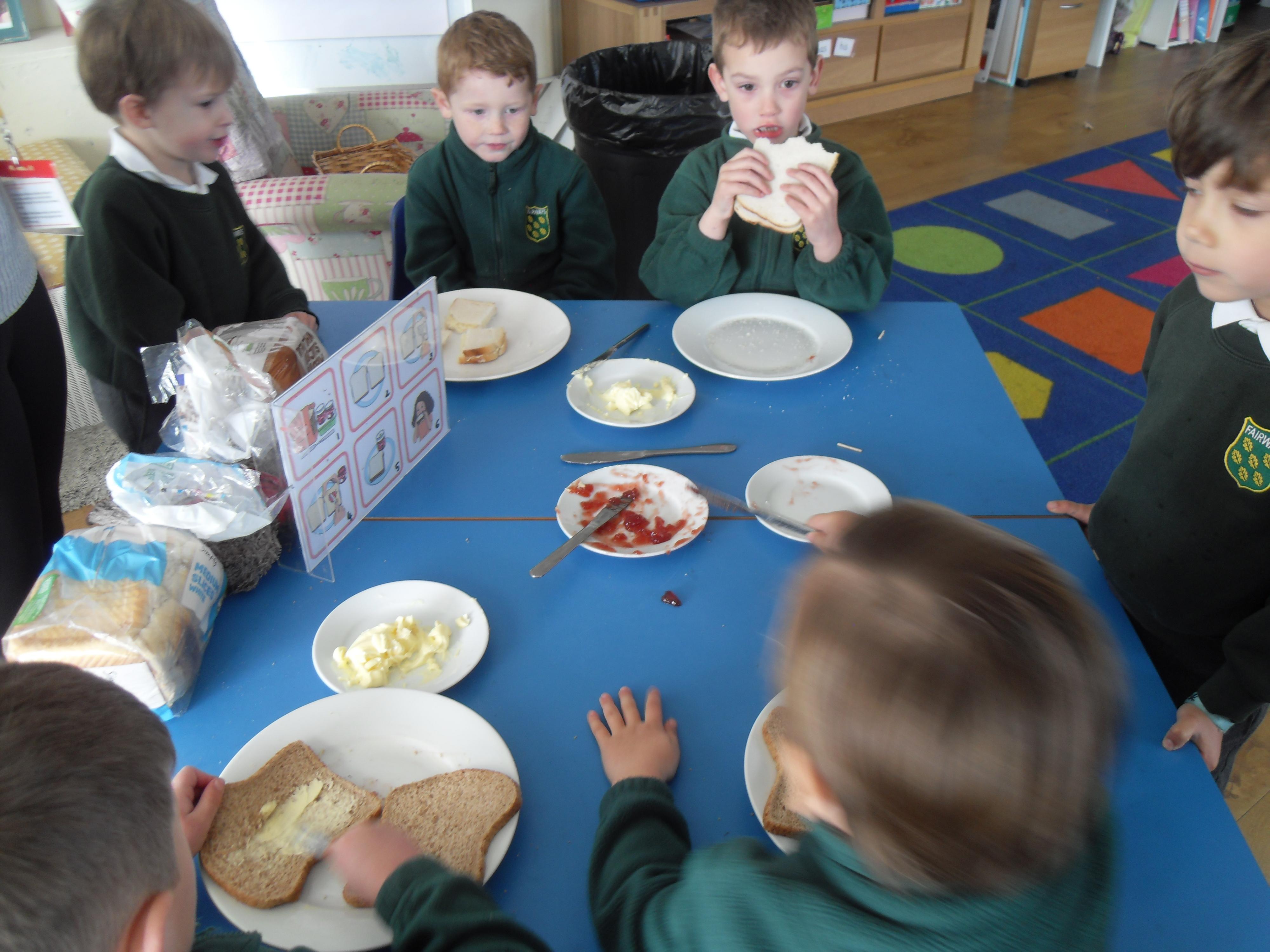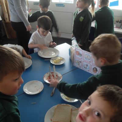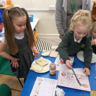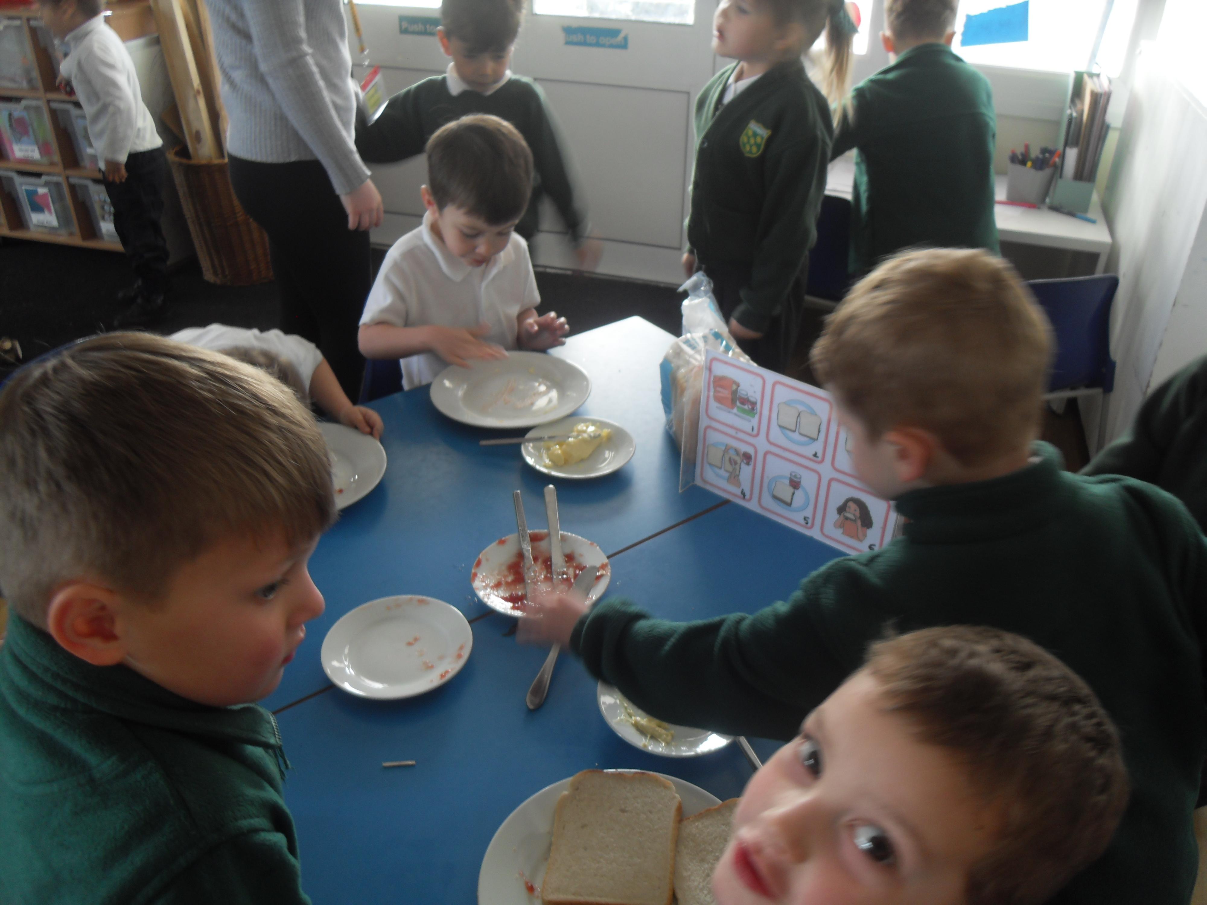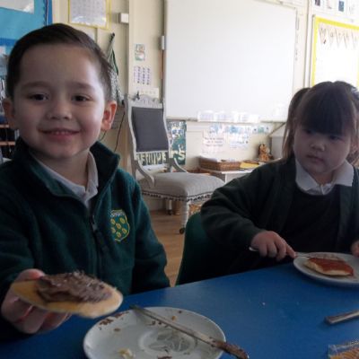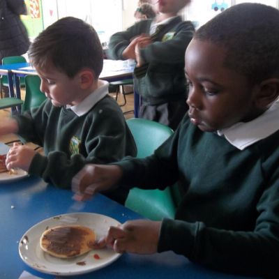 Today we have been learning about the traditions associated with Shrove Tuesday and how it is celebrated in different countries. The children were very excited to discover that we would actually be eating pancakes in school! They chose between jam and chocolate as a topping and had to demonstrate good control of the knife to spread their chosen topping onto their pancake before eating it- I think it's safe to say we have a year group full of pancake lovers!