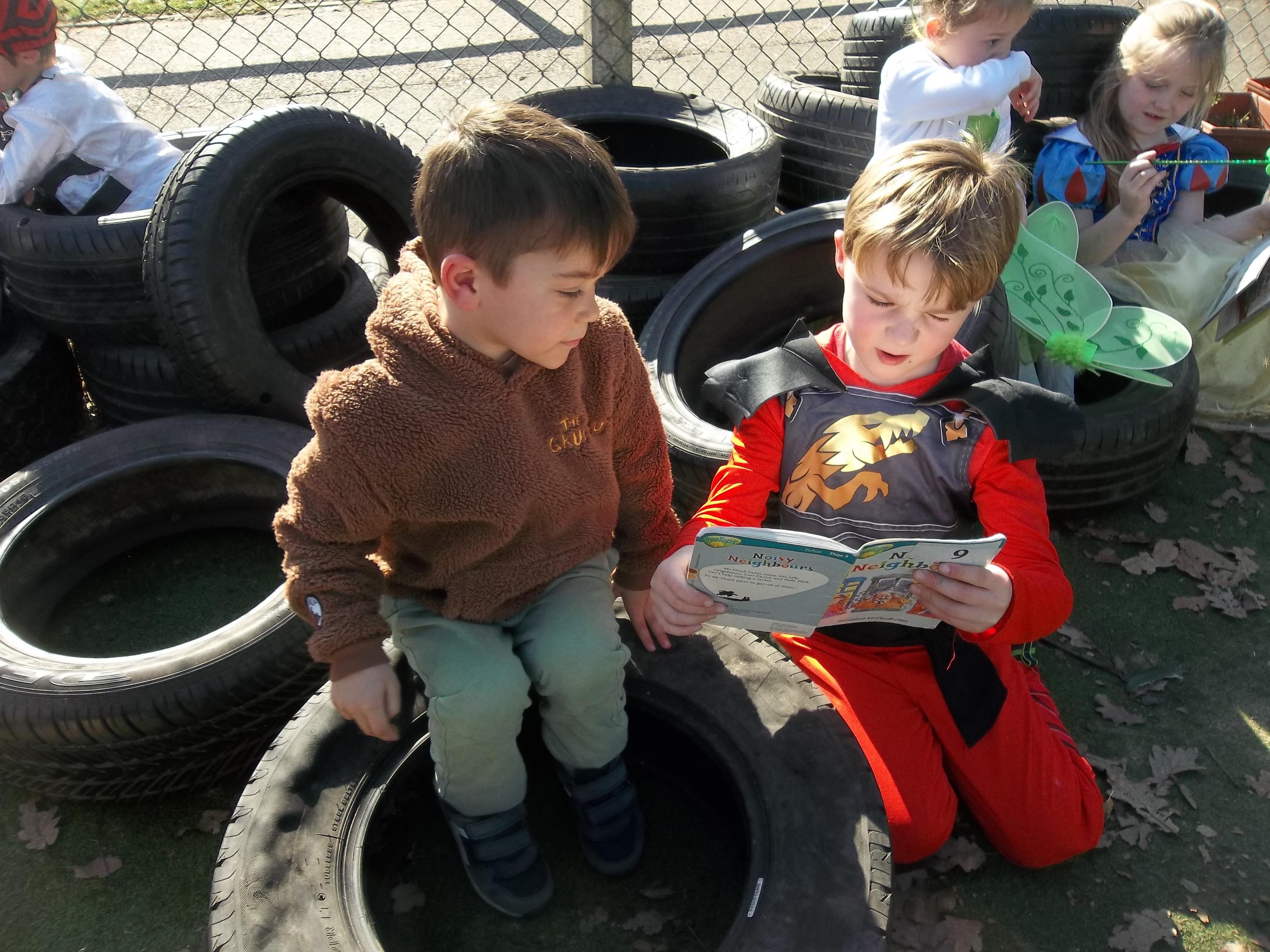 Reception have had a lovely day celebrating World Book Day.  We welcomed Year 2 children to our classrooms to share each other's reading books and then took part in a whole school parade to share our costumes.