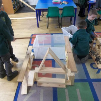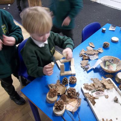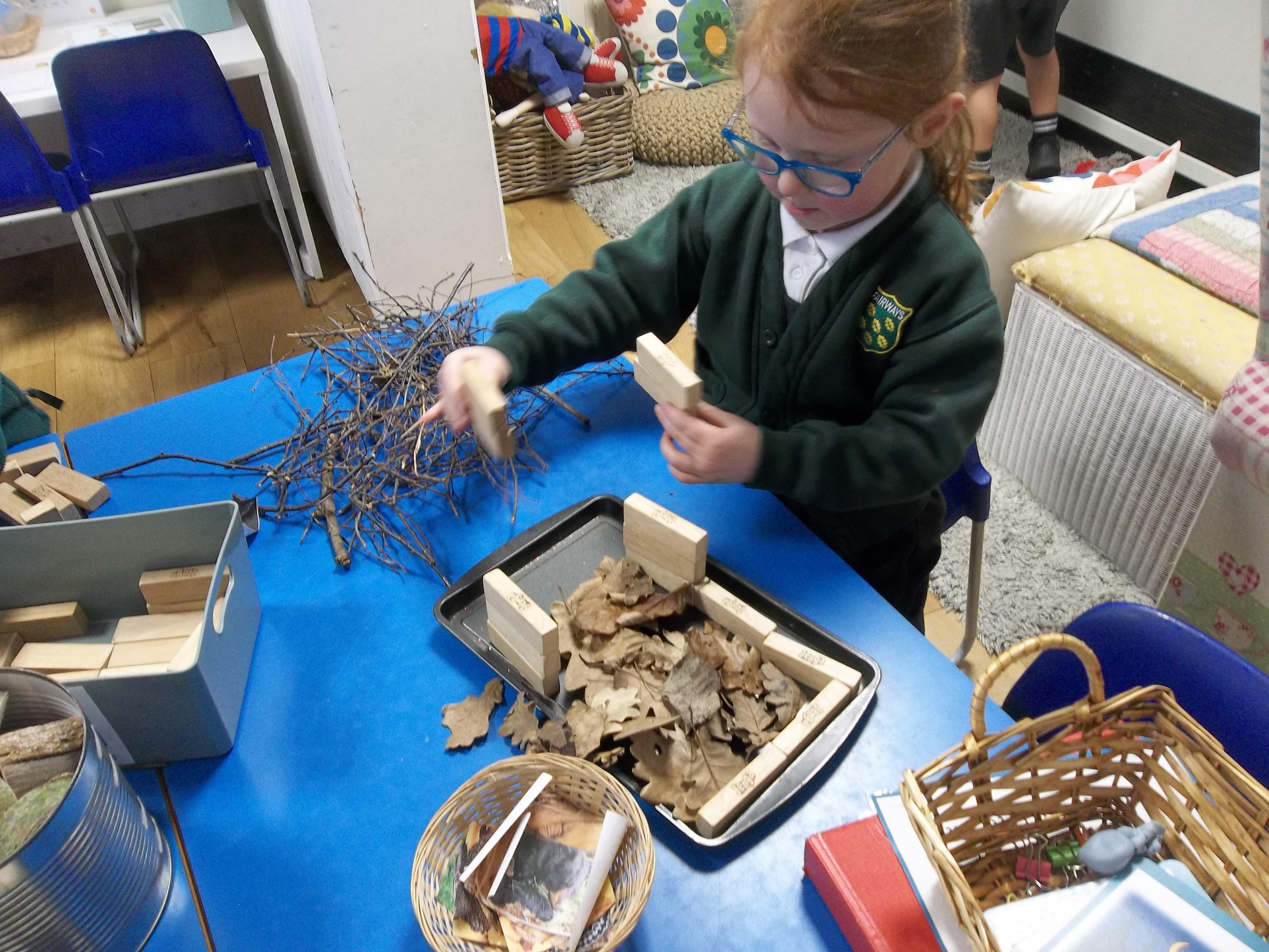 Children have been very busy making dens, caves and other structures for animals to hibernate in. First, we collected twigs and leaves from outside then discussed which animals would hibernate where. The children then got to work making warm and safe spaces for the animals to spend the winter in.