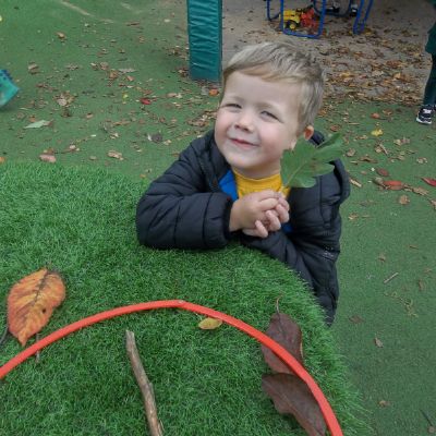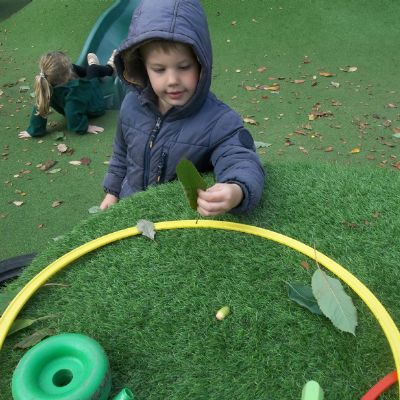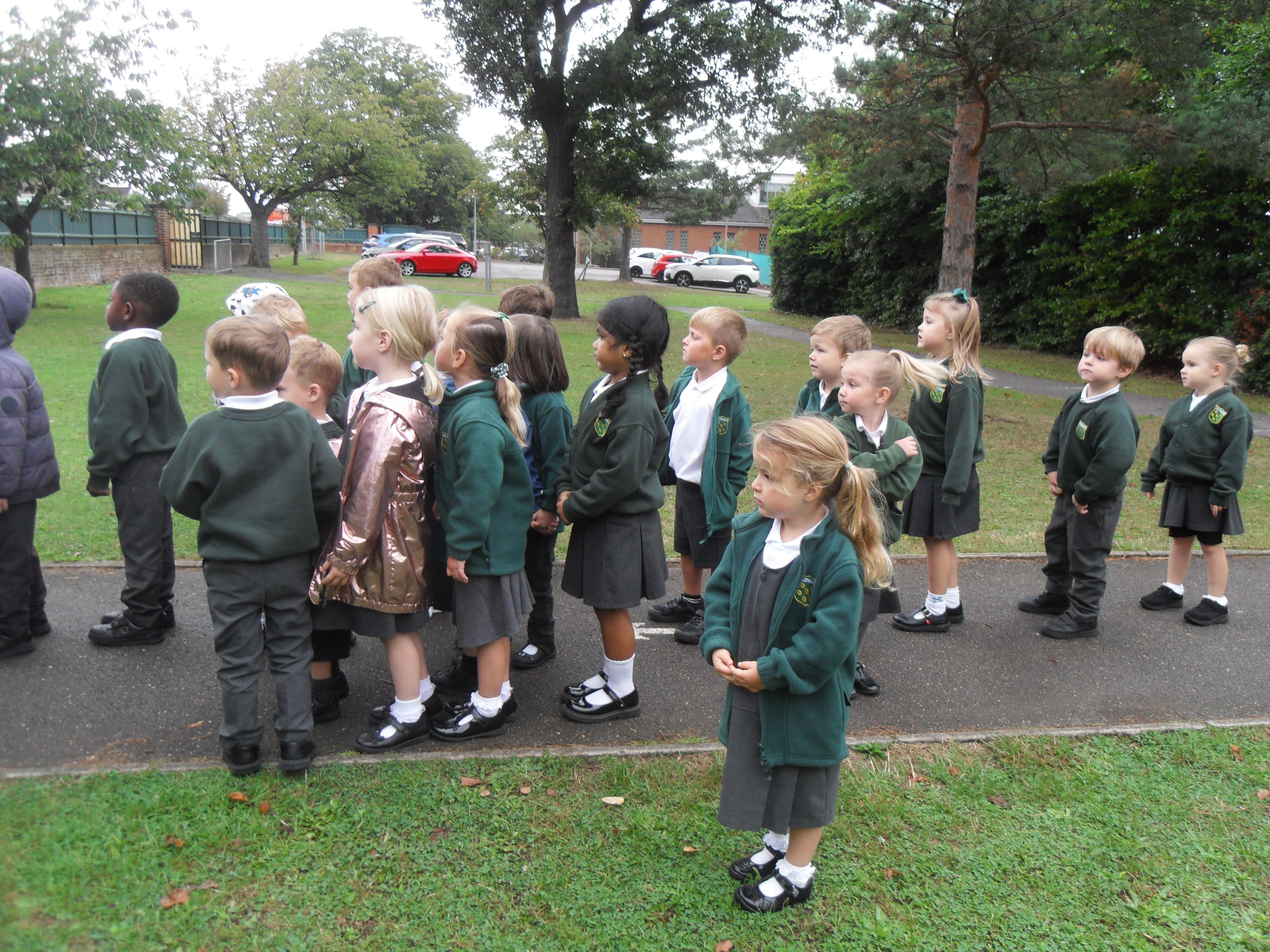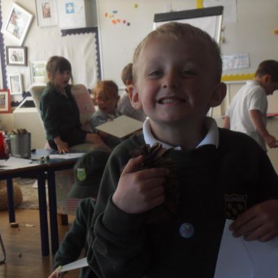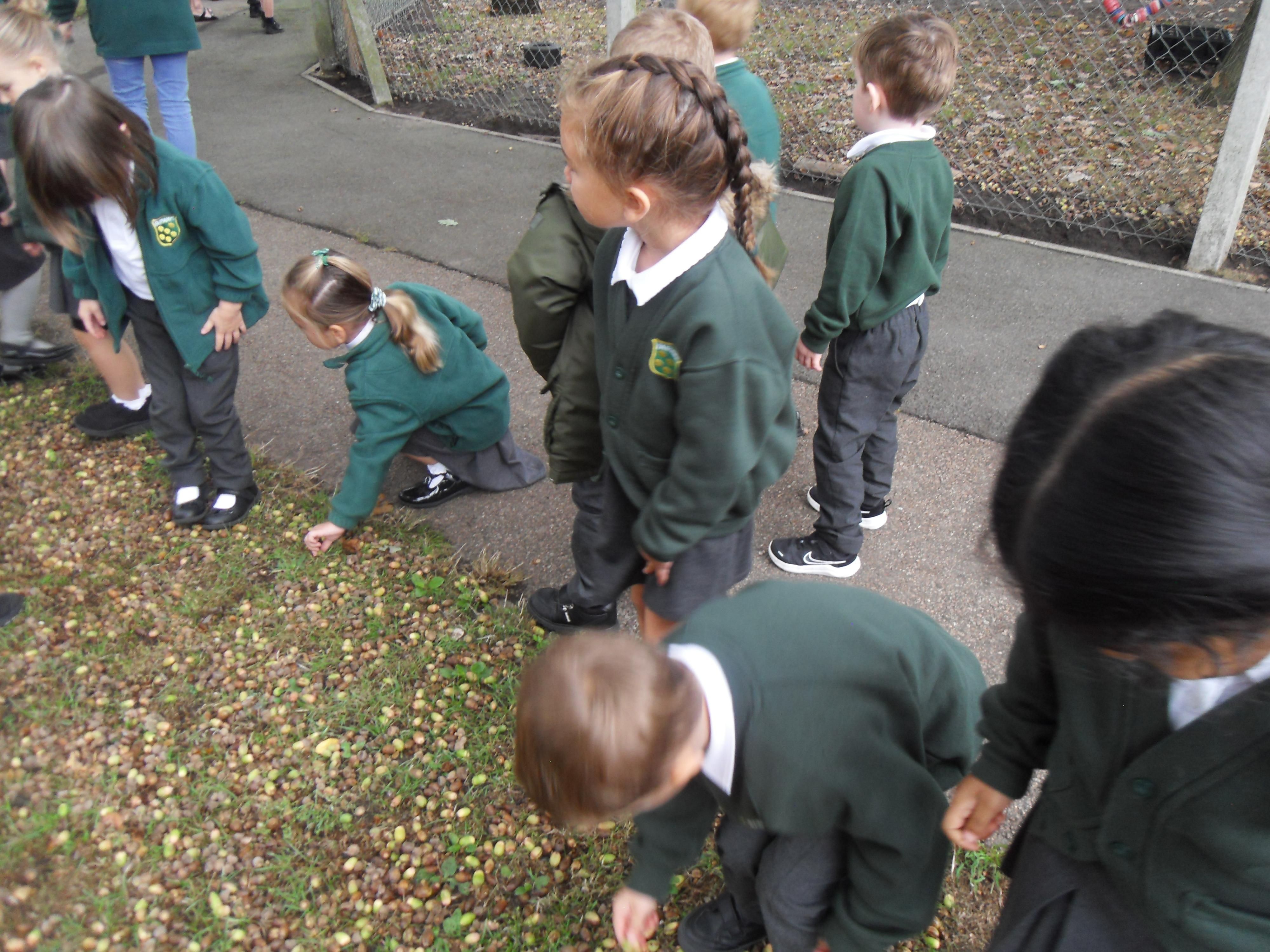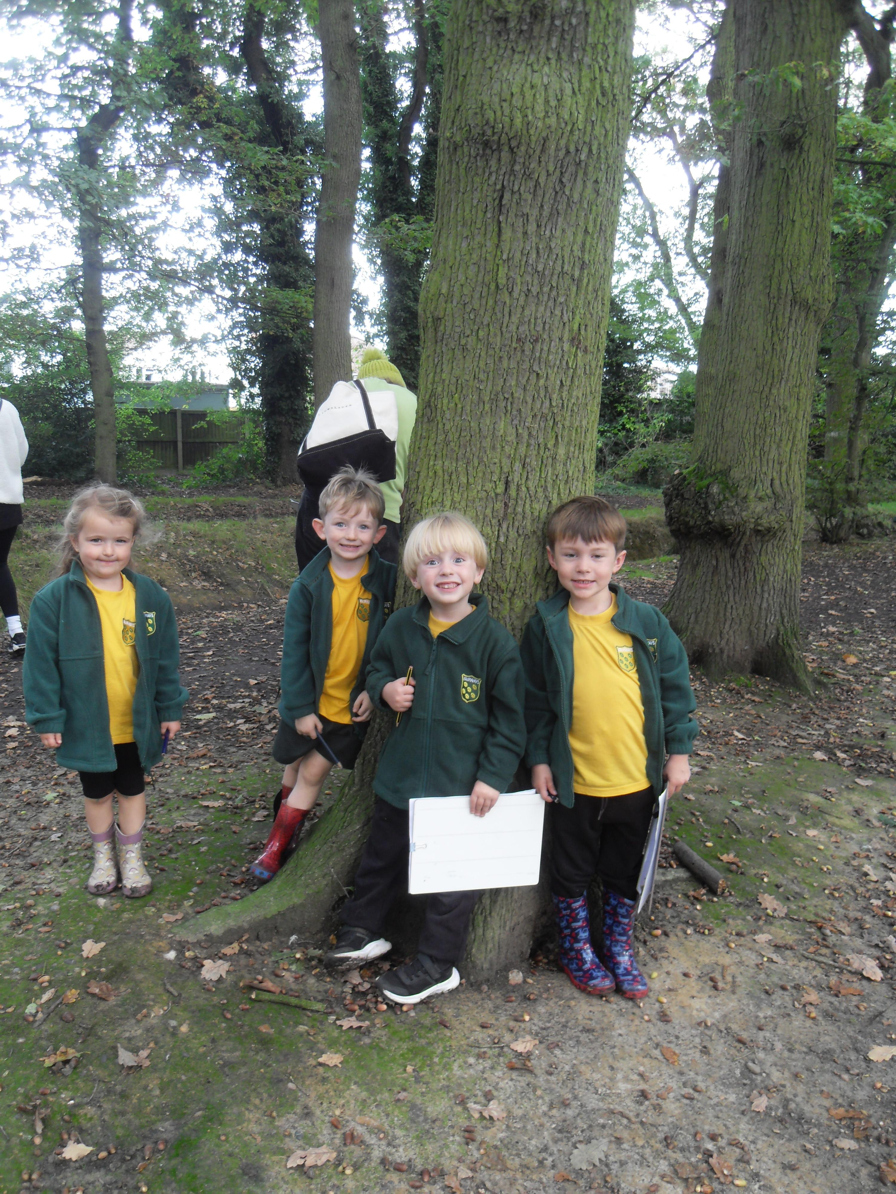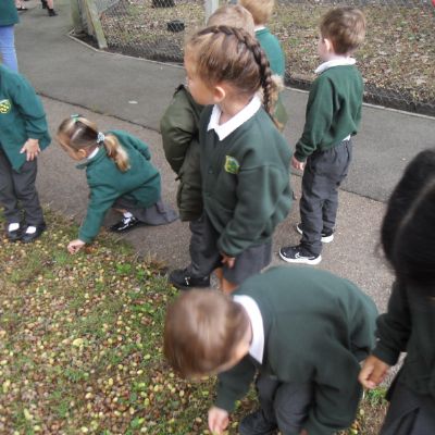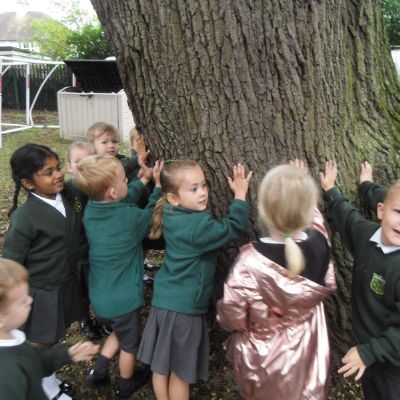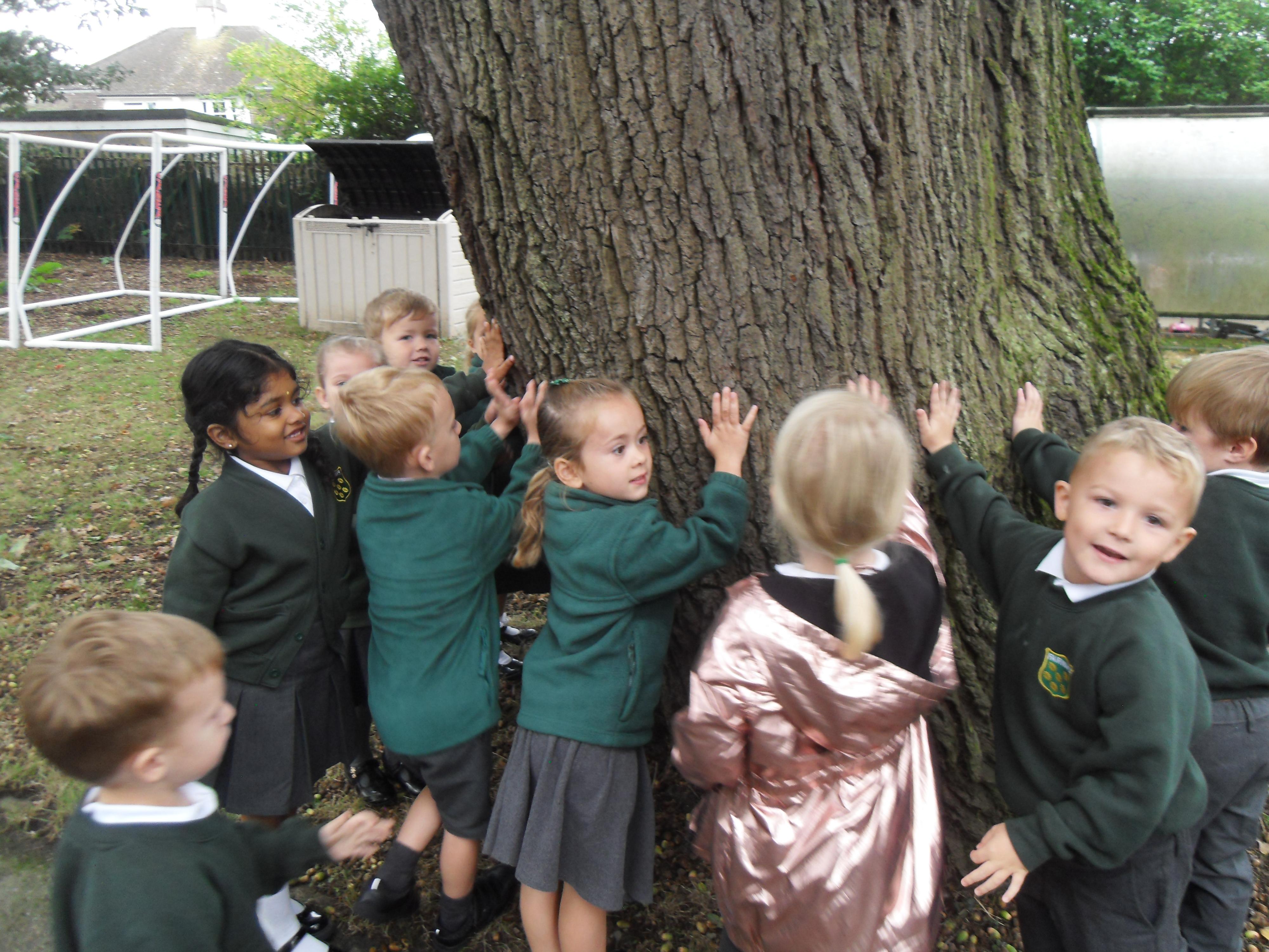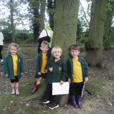 We have been learning about the five senses and today we went on a walk around the school grounds to discuss the things that we could see, hear and feel. The children liked touching the rough bark on the tree and the smooth acorns on the ground. They could hear lots of noisy cars, birds tweeting and children chattering too! They used some wonderful descriptive language which we will reinforce later in the week.