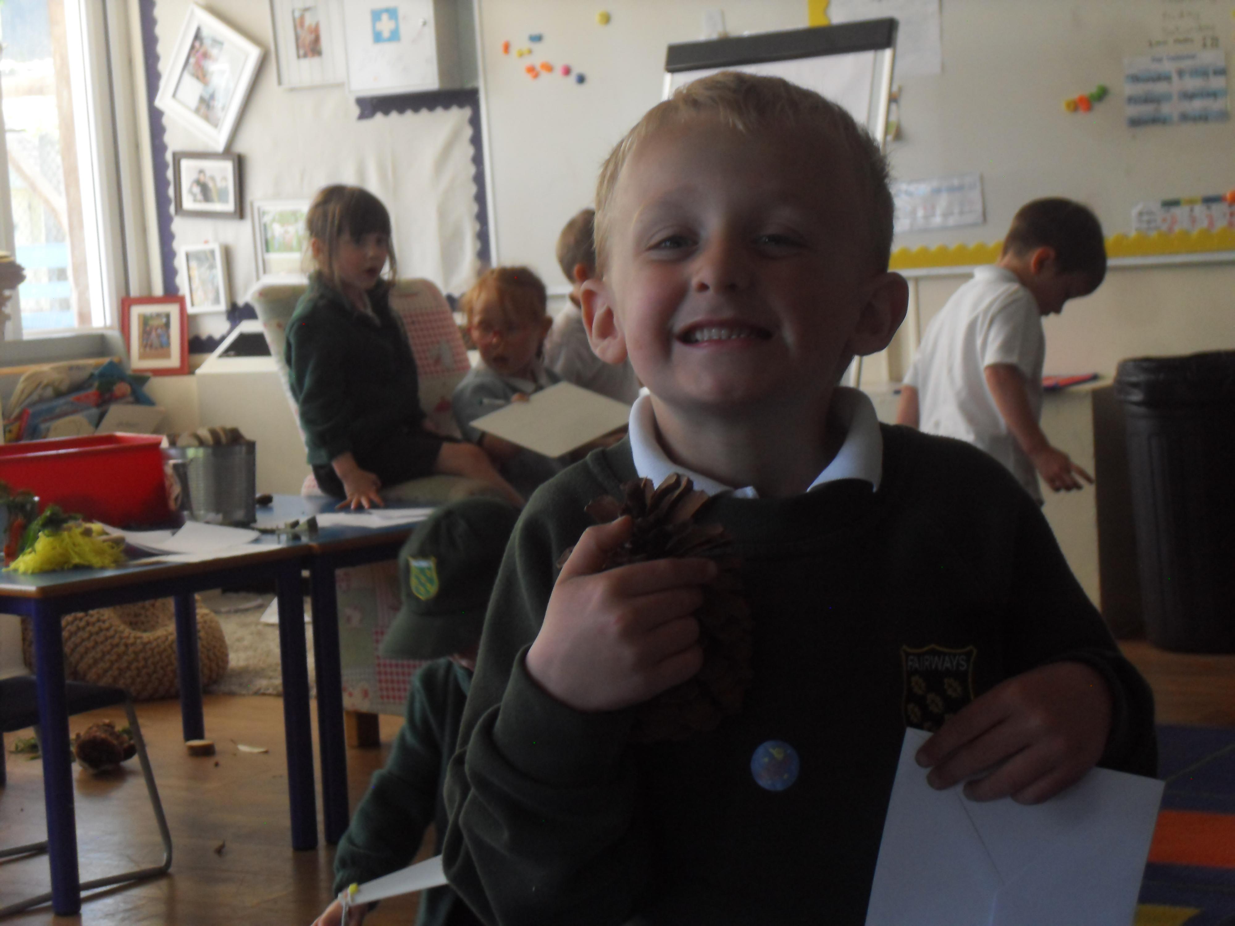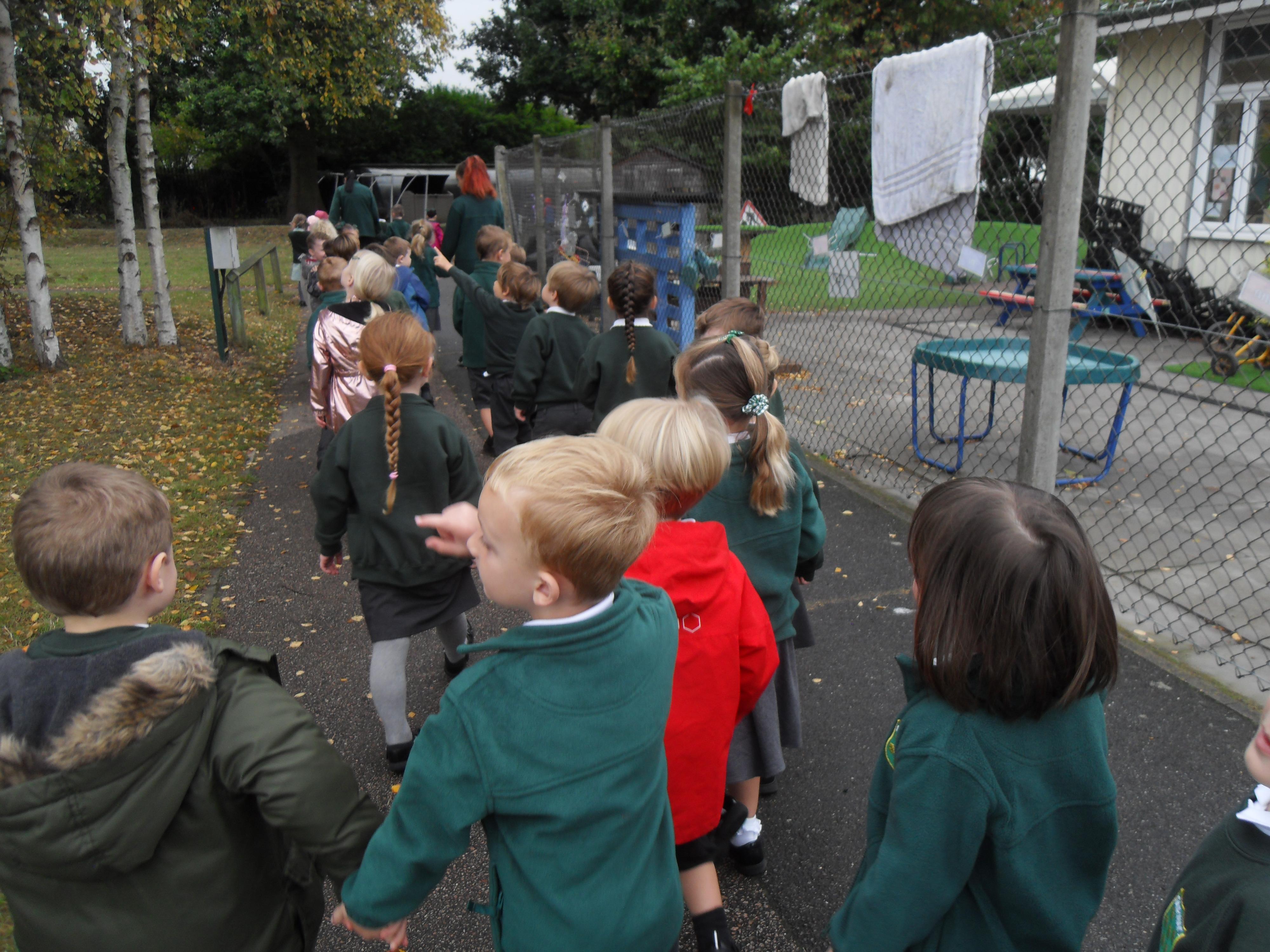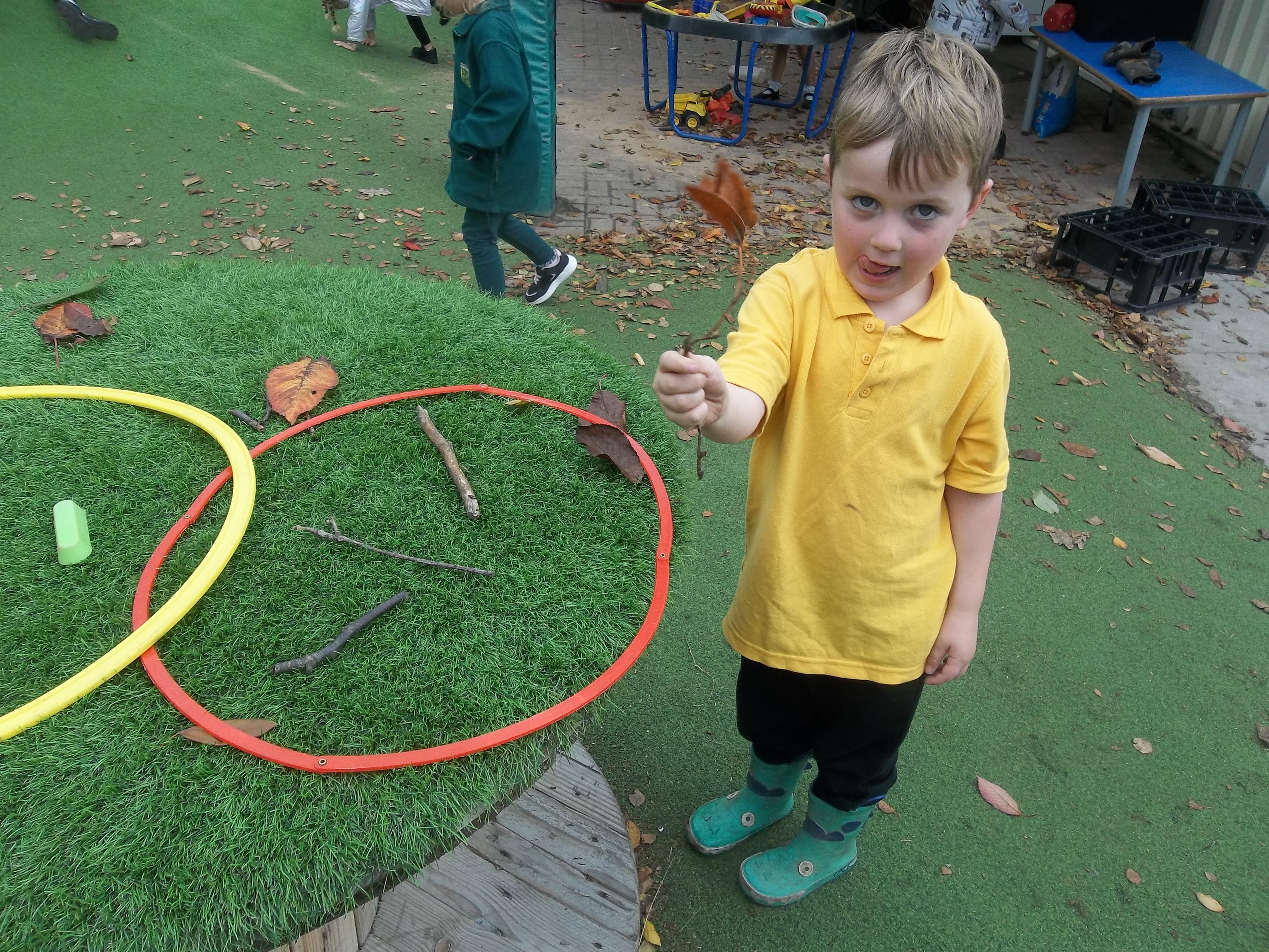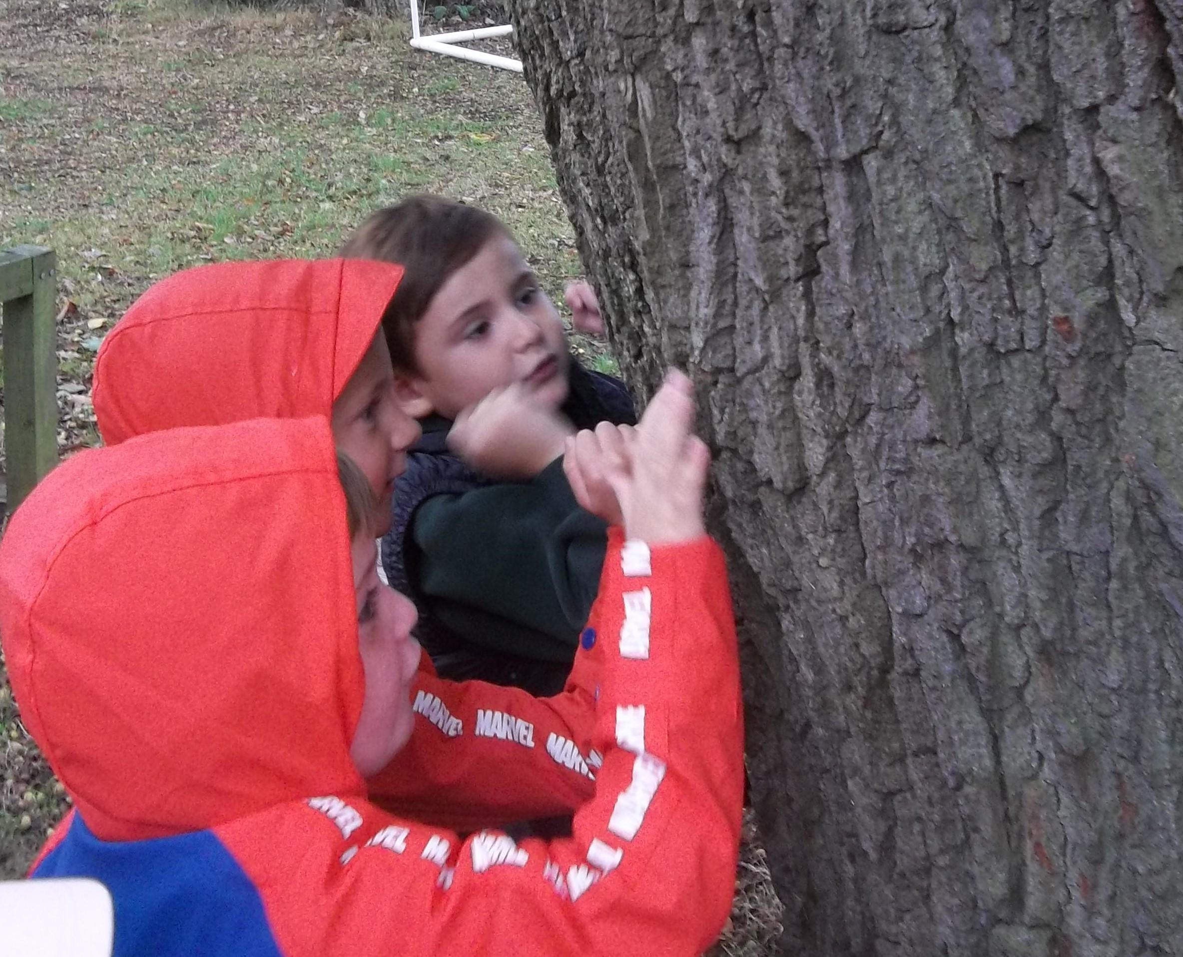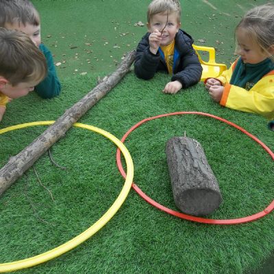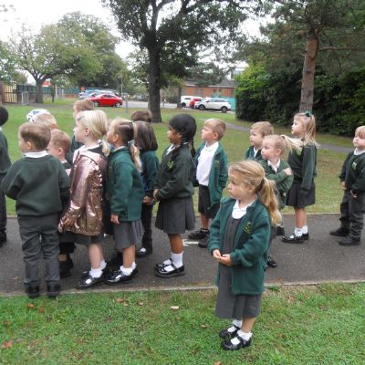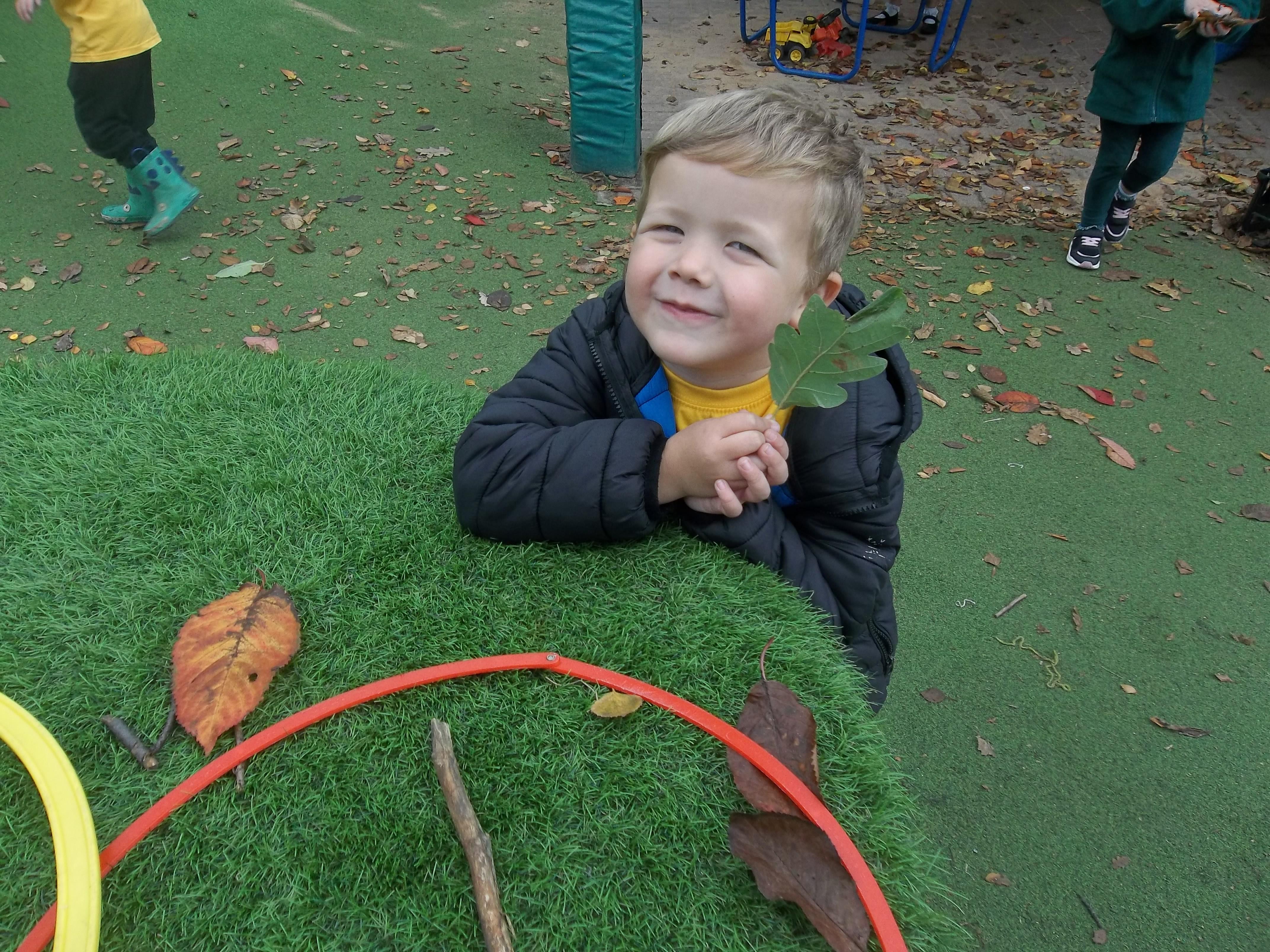 We have been learning about the five senses and today we went on a walk around the school grounds to discuss the things that we could see, hear and feel. The children liked touching the rough bark on the tree and the smooth acorns on the ground. They could hear lots of noisy cars, birds tweeting and children chattering too! They used some wonderful descriptive language which we will reinforce later in the week.