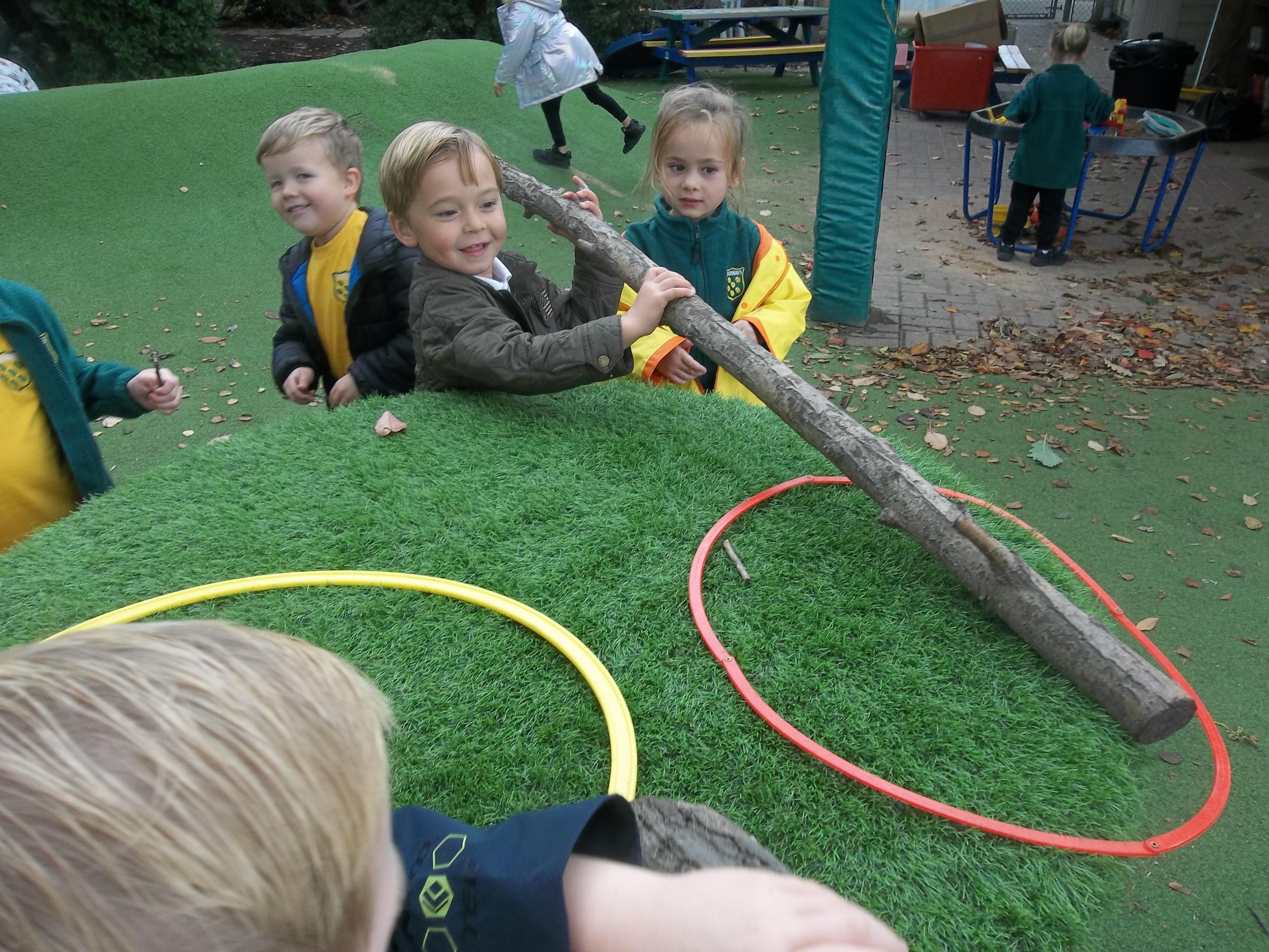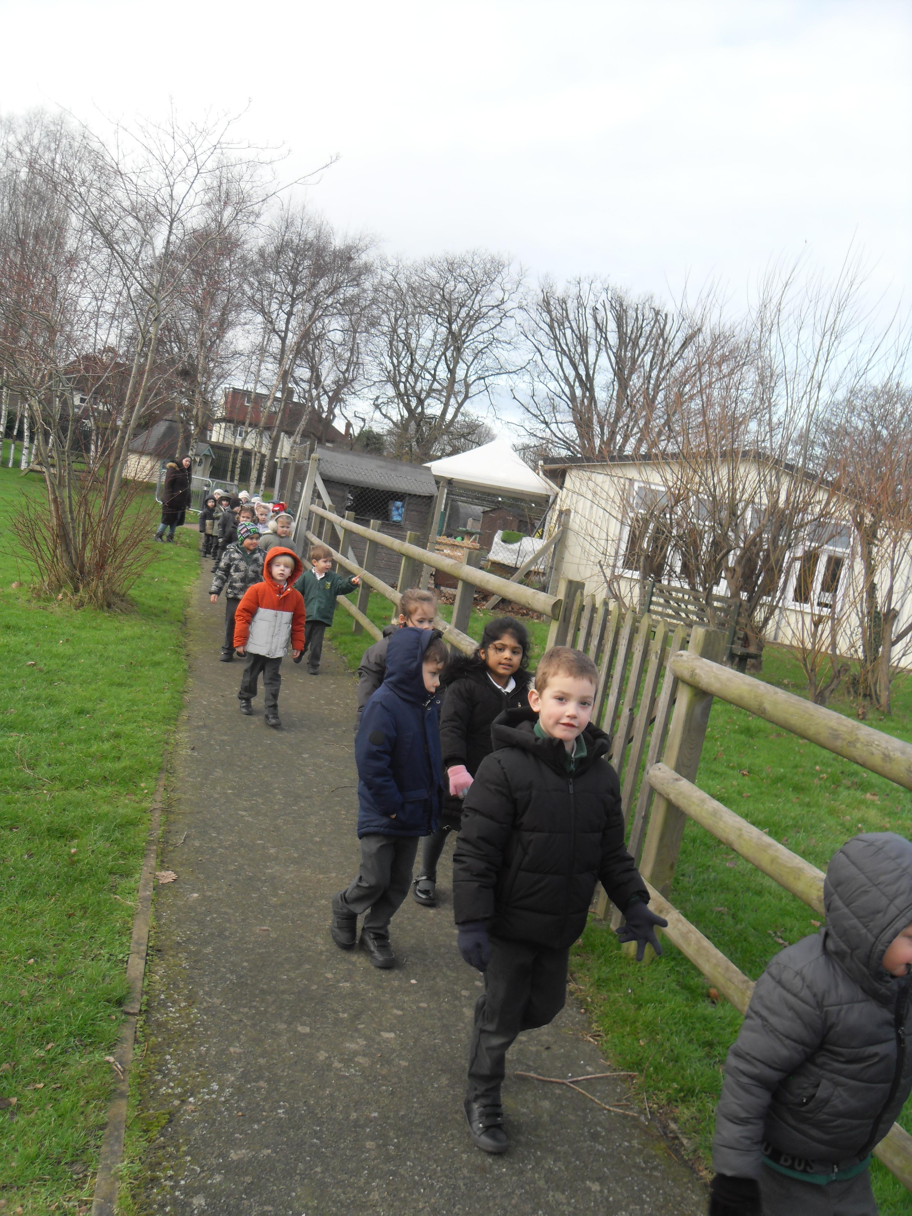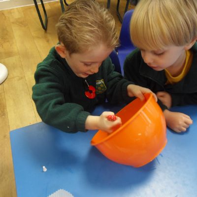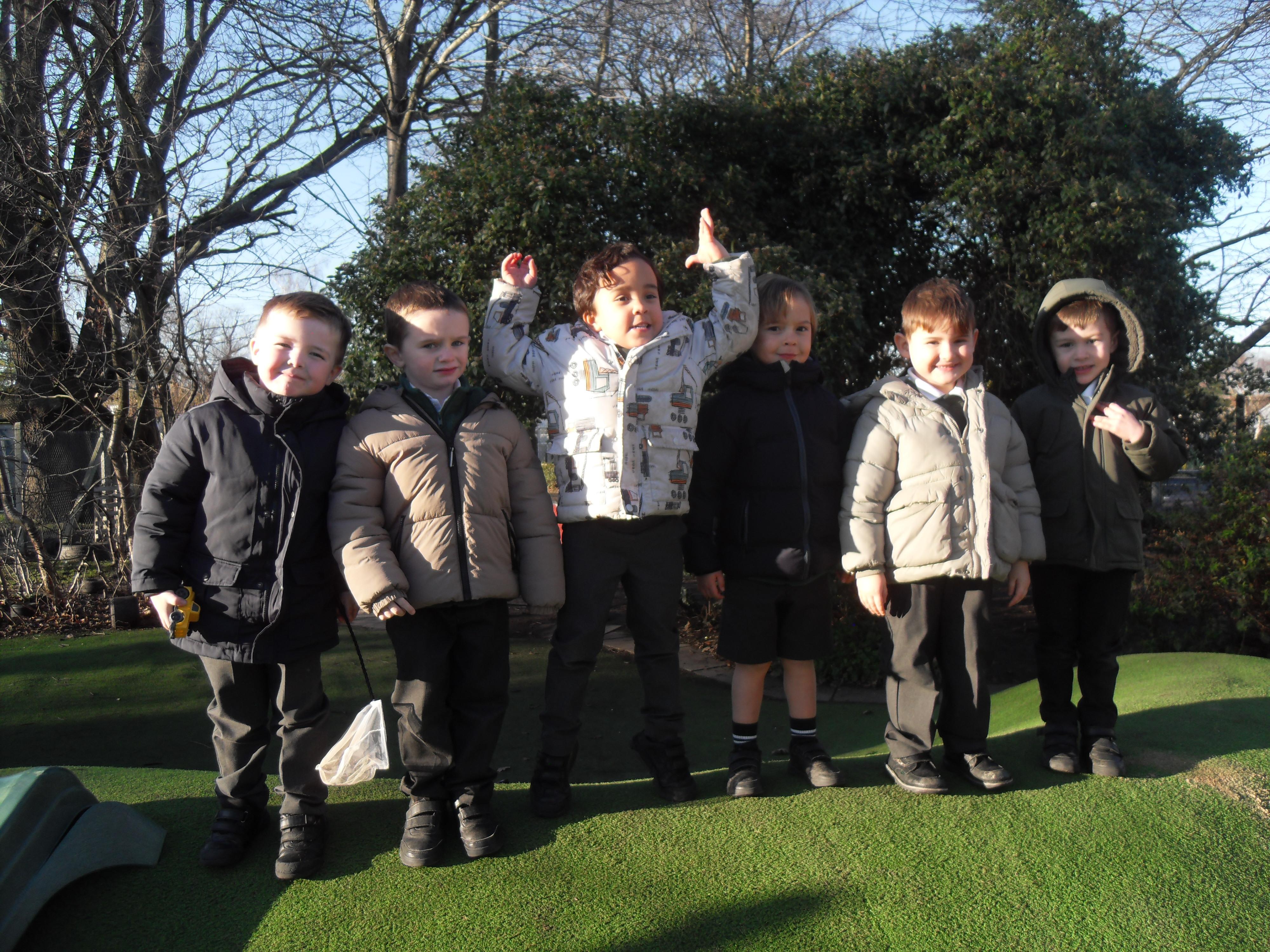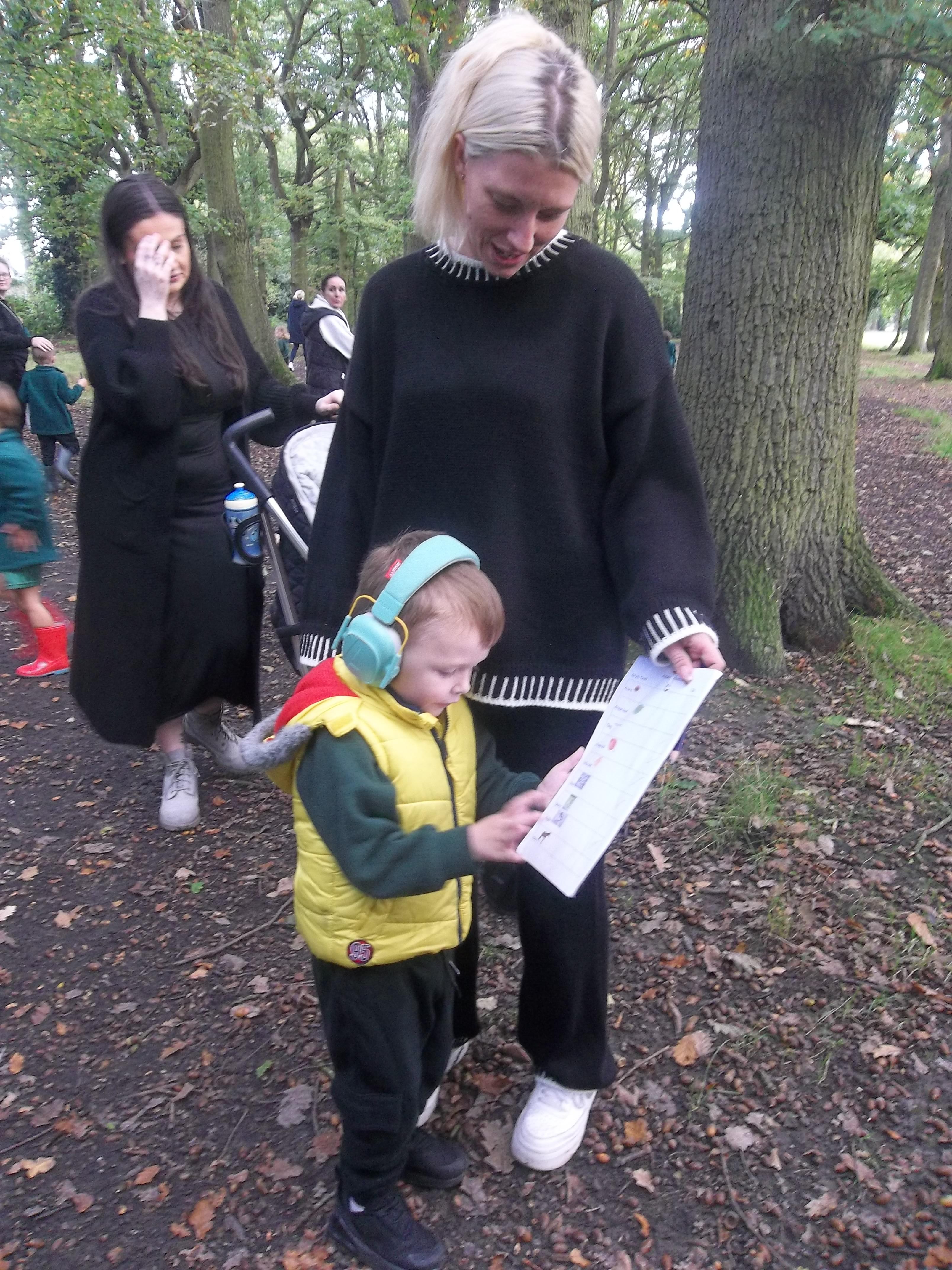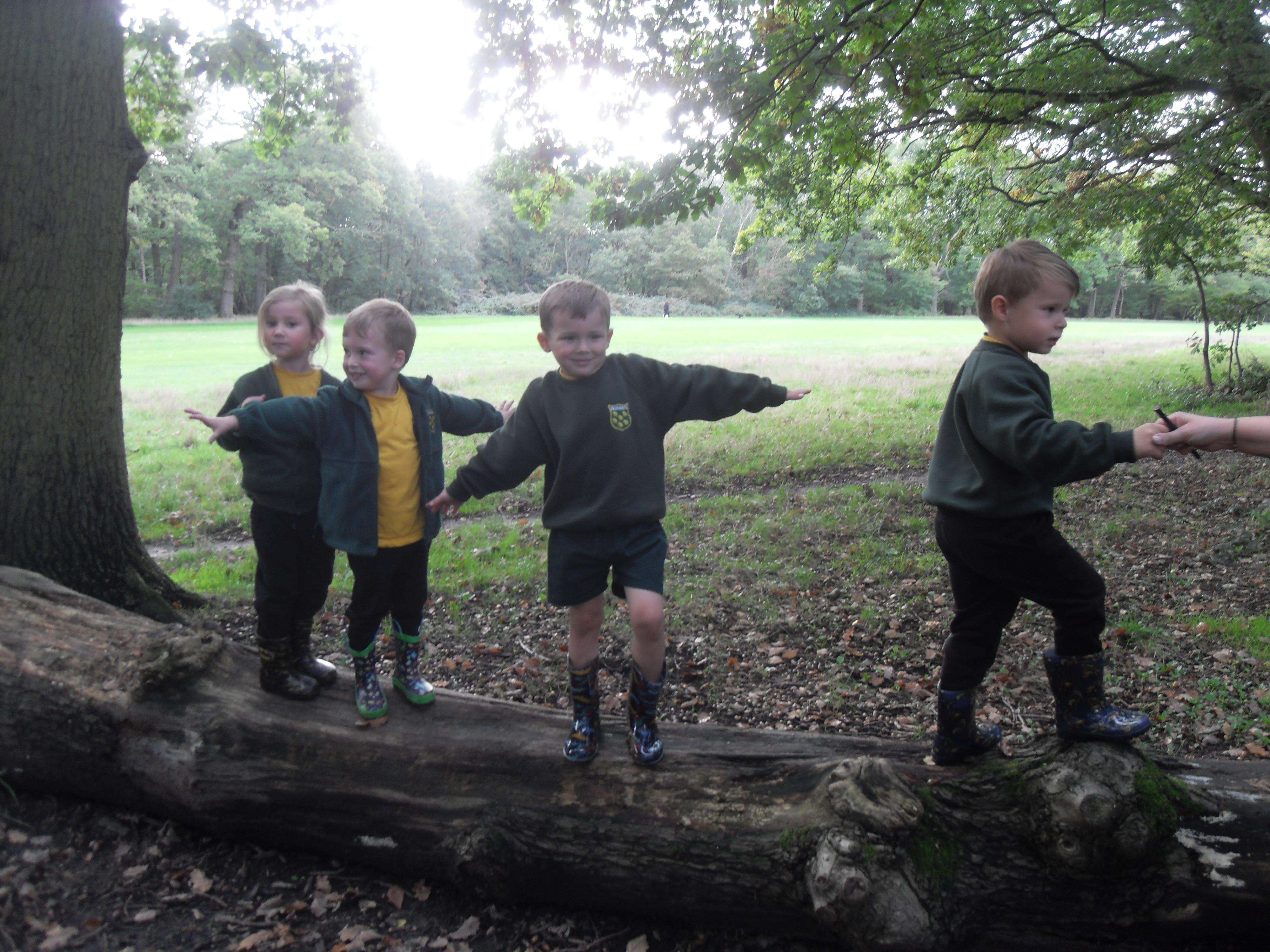 We have been learning about the five senses and today we went on a walk around the school grounds to discuss the things that we could see, hear and feel. The children liked touching the rough bark on the tree and the smooth acorns on the ground. They could hear lots of noisy cars, birds tweeting and children chattering too! They used some wonderful descriptive language which we will reinforce later in the week.