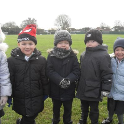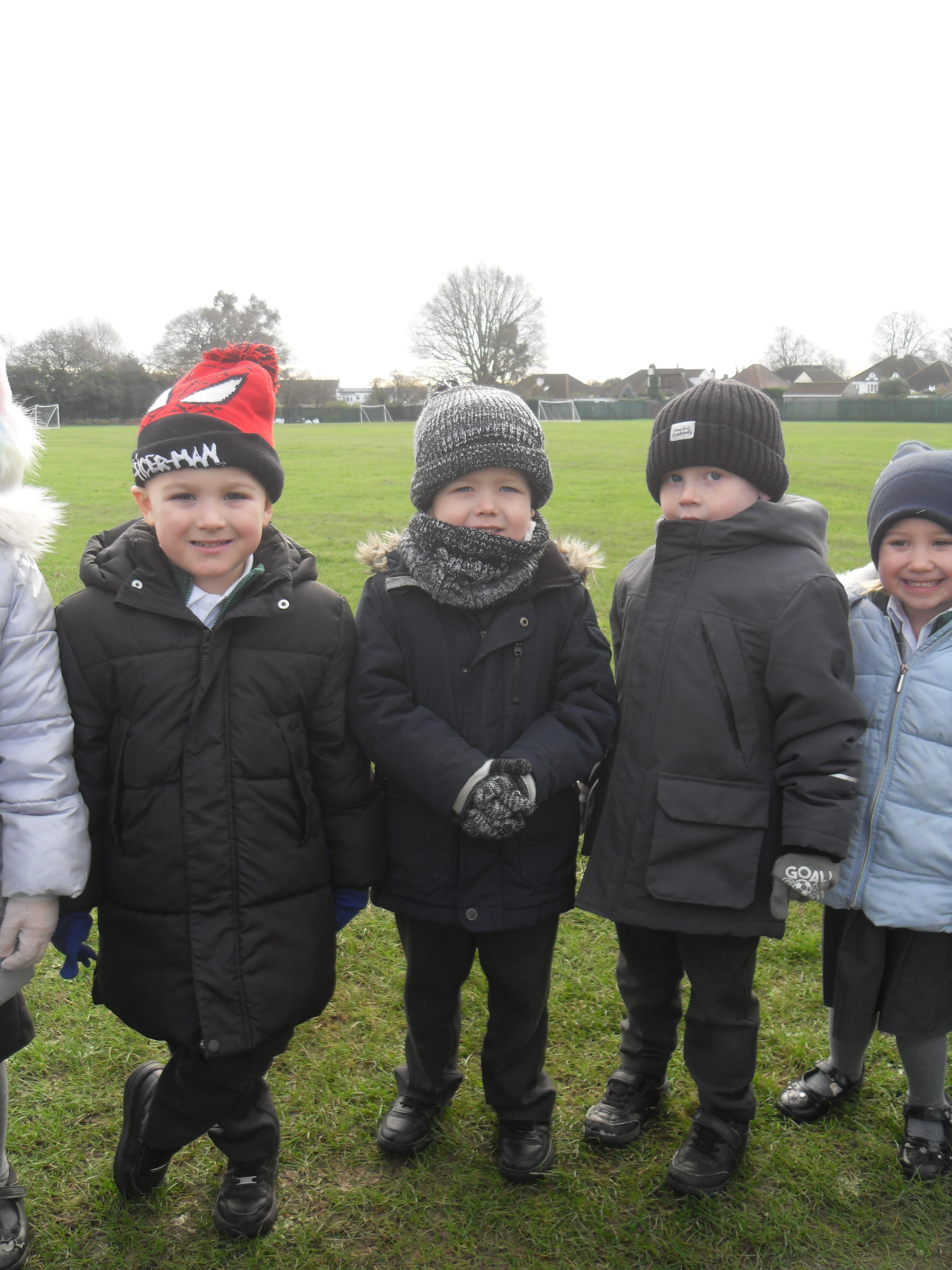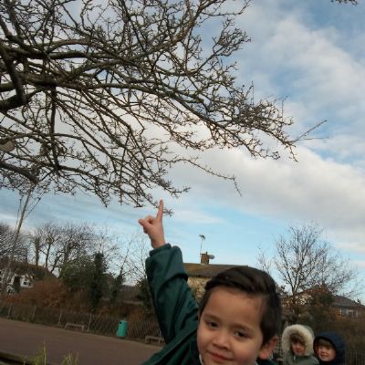 Today we went on a walk around the school grounds to look for signs of winter. We talked about the fact that it had turned very cold and we even saw ice and frost last week! Today we felt that the grass was damp and we could see berries growing on some trees. Most of the trees we saw were bare but we also discussed the fact that some are evergreens.