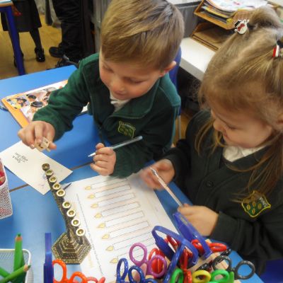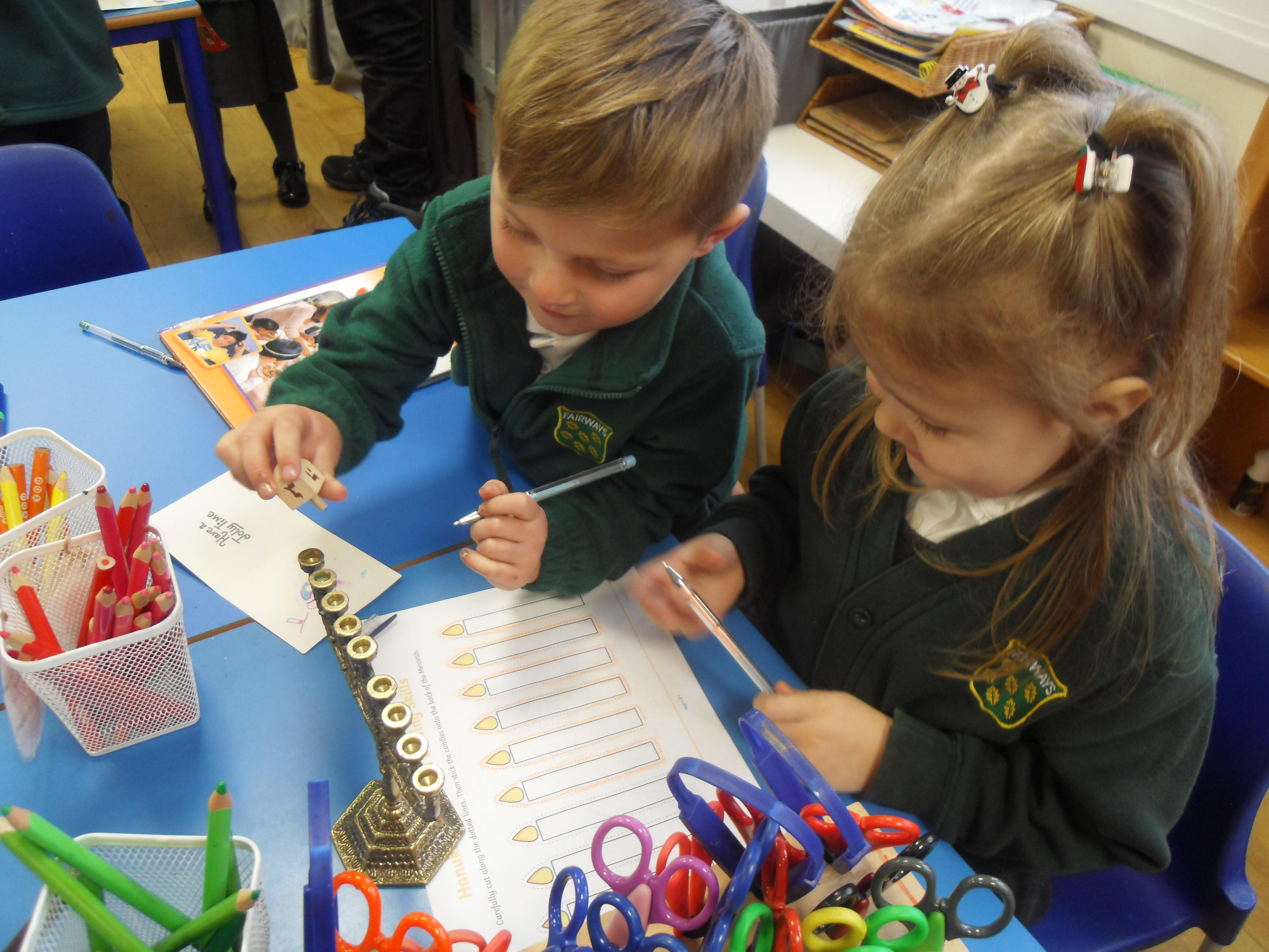 The past two days children in Reception have been learning all about the Jewish festival, Hanukkah. We have discussed how the Jewish community celebrate Hanukkah, including the story of the Menorah. We have made dreidels to decorate our classroom and played a traditional Jewish game with a wooden dreidel.  Children have also sampled some Jewish food called latke, fried potato pancakes, which they really enjoyed!