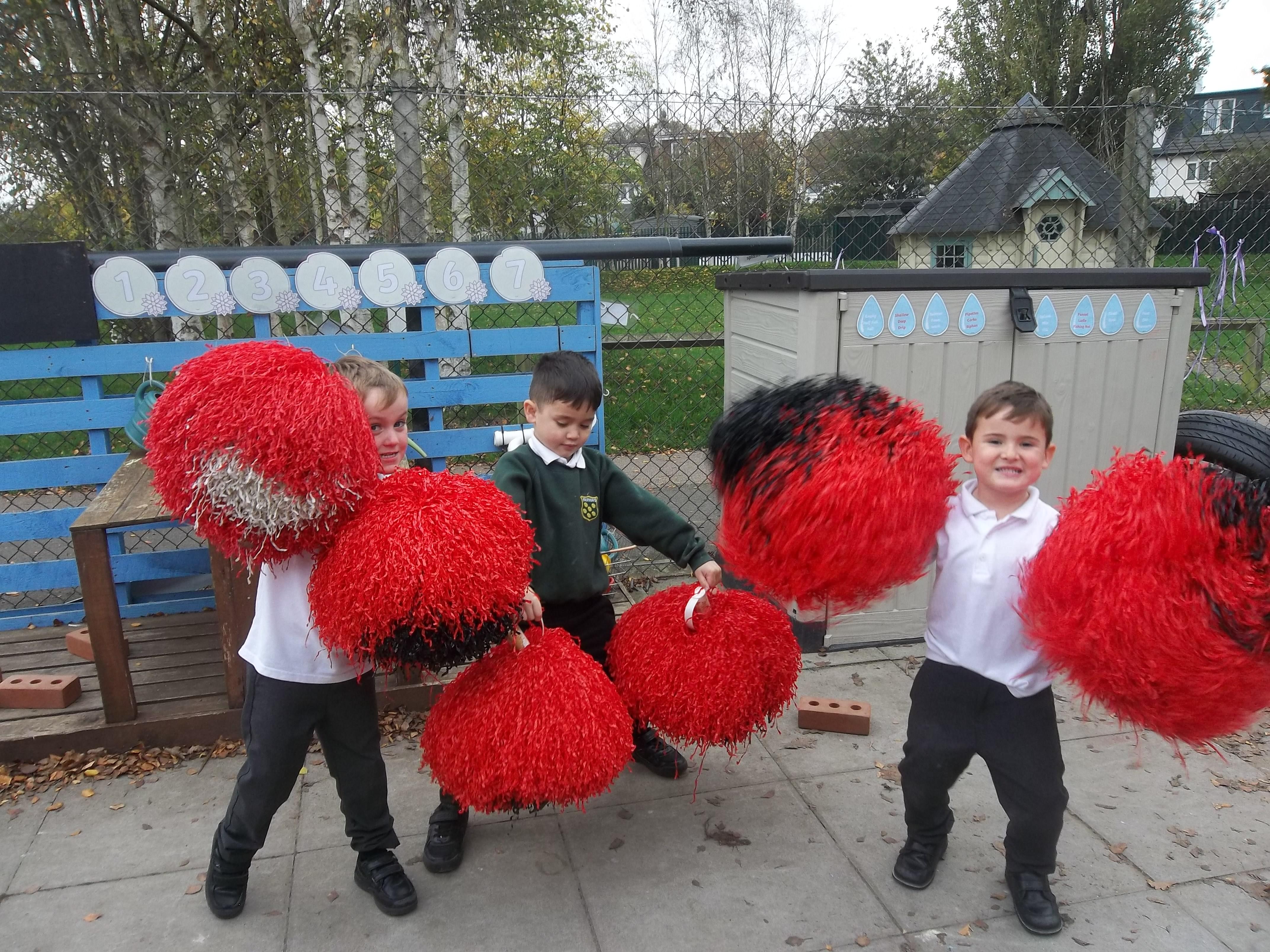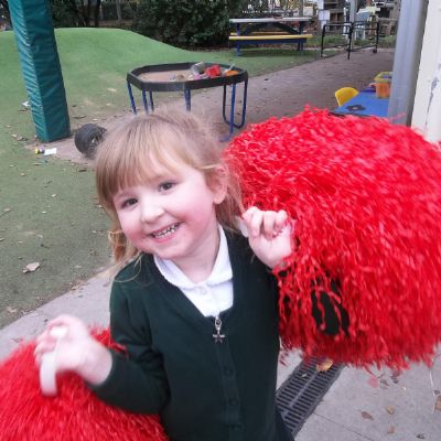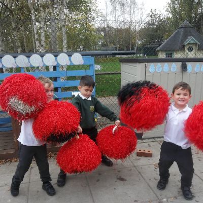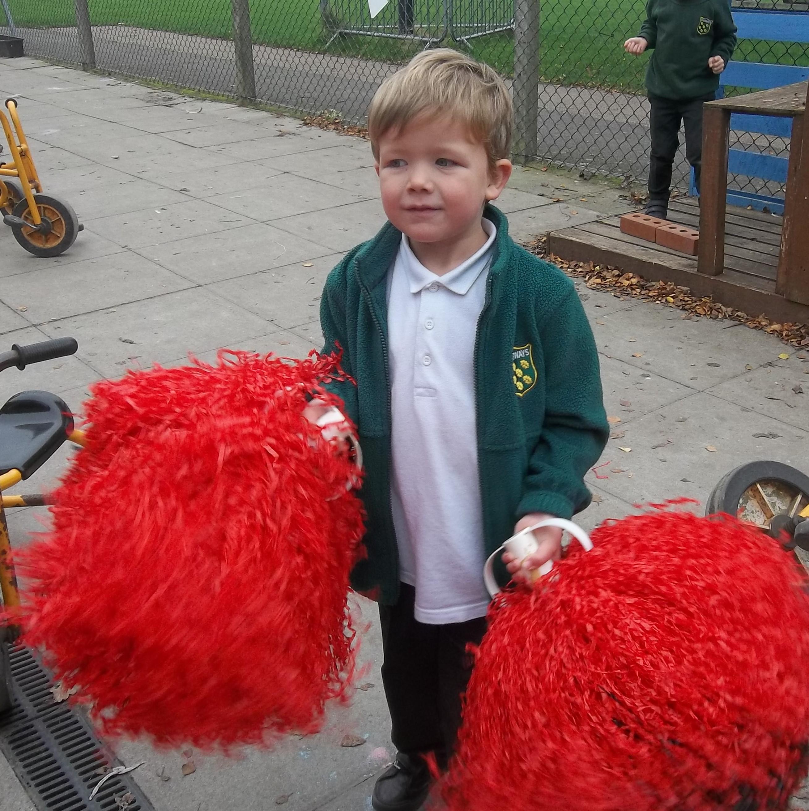 Today some of the children used pompoms to make up dances with their friends. Activities like these support the development of the children's gross motor skills whilst also allowing their creativity to shine through in the wonderful routines they created! Since today is Guy Fawkes Night, they particularly enjoyed making up dances to Katy Perry's 'Firework' song!