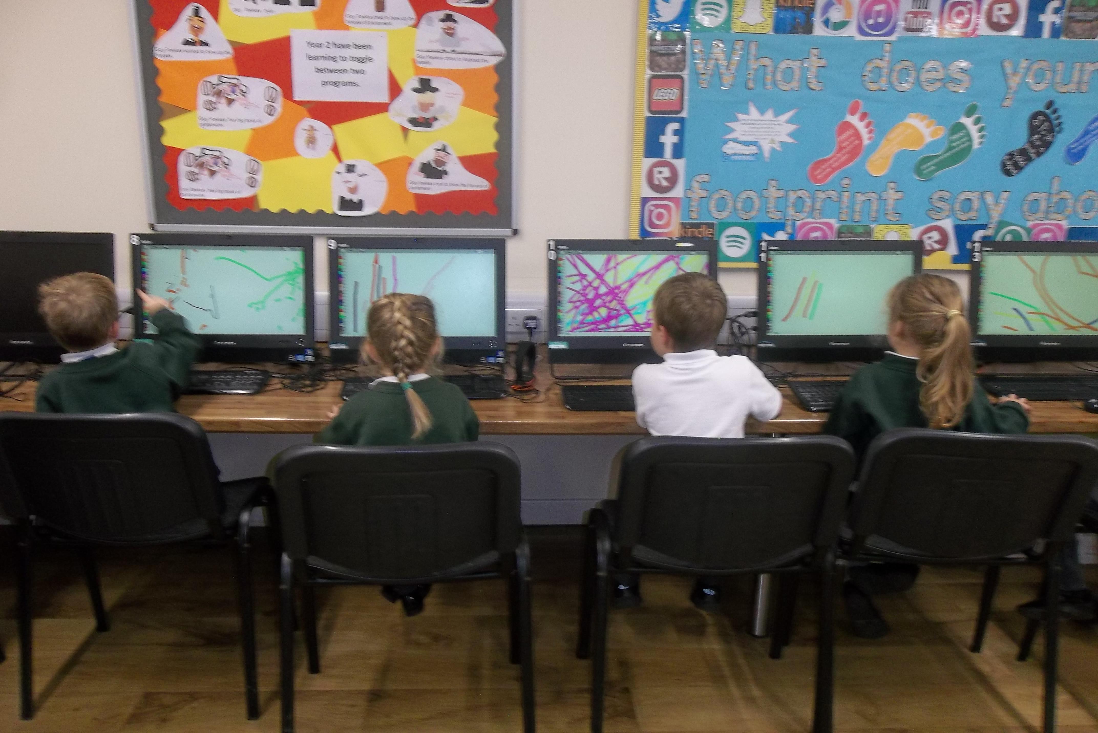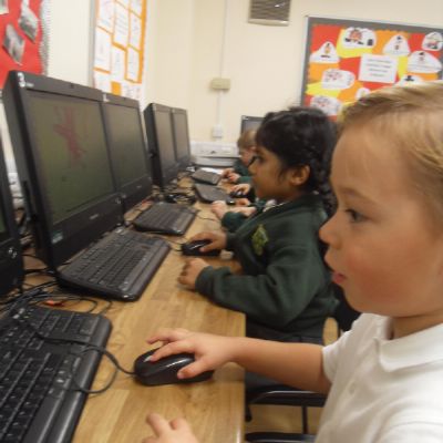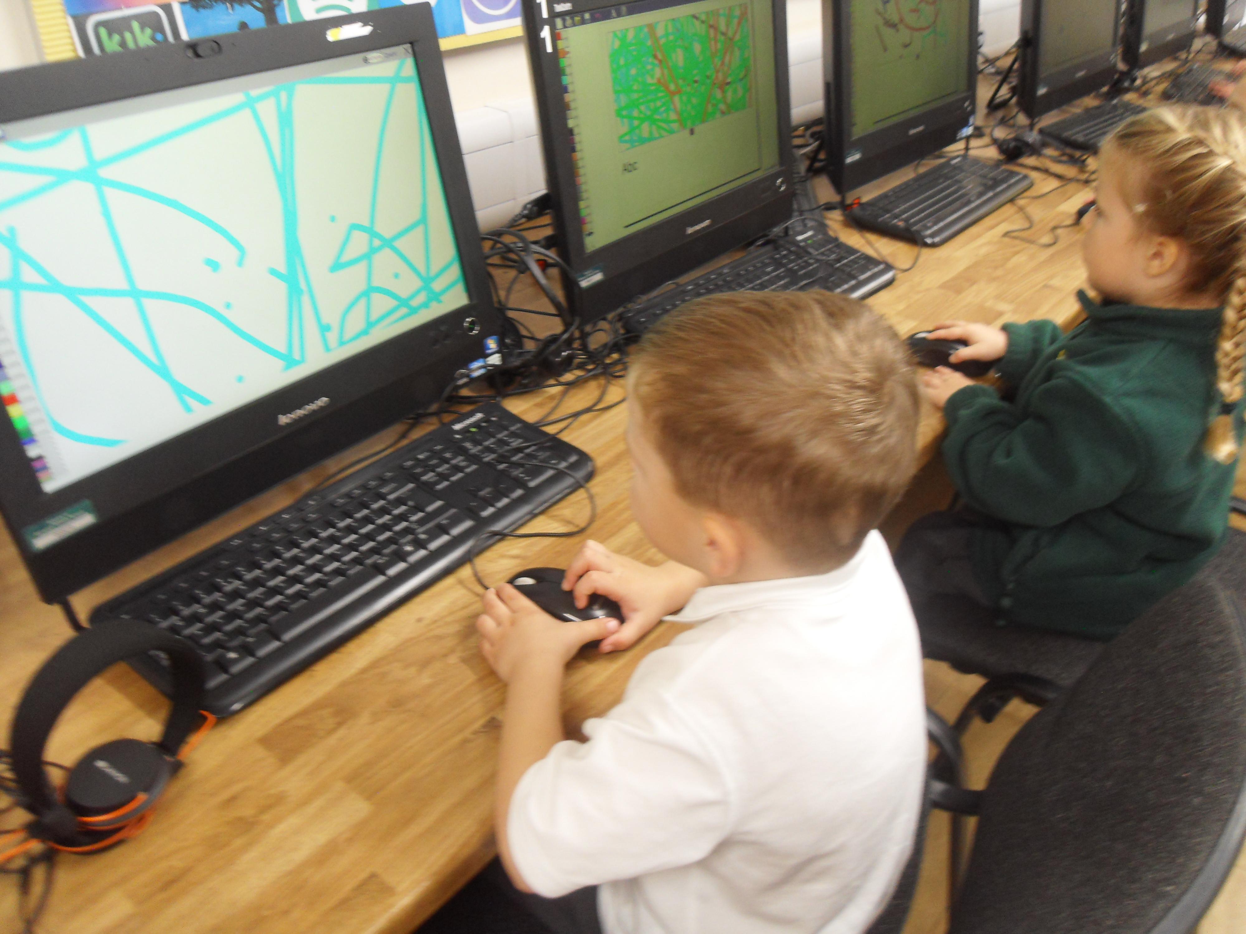 Today the children had their first Computing lesson in the ICT Suite. We taught them how to use a mouse to draw firework pictures. They were so well behaved and all tried so hard- well done everyone!