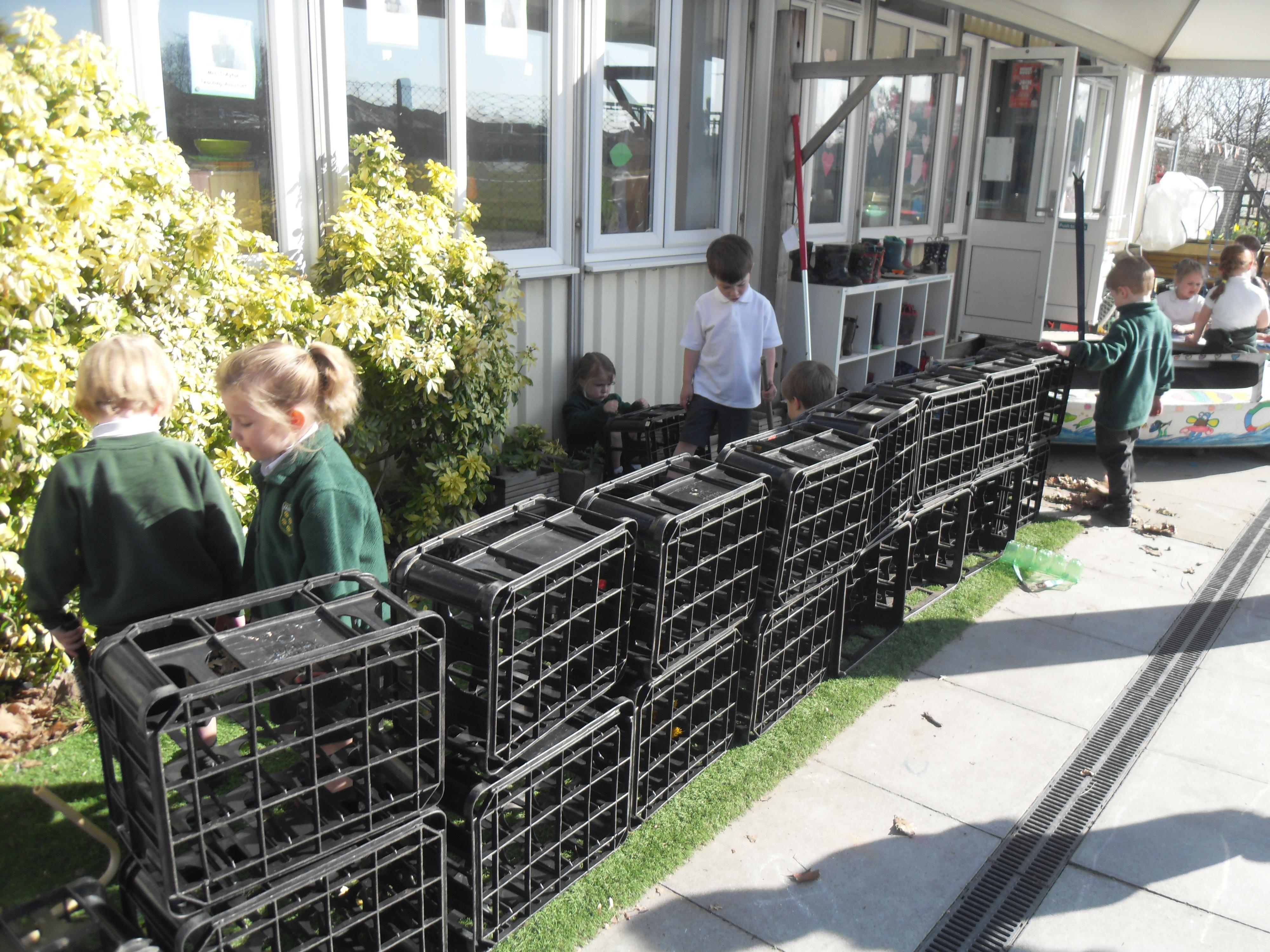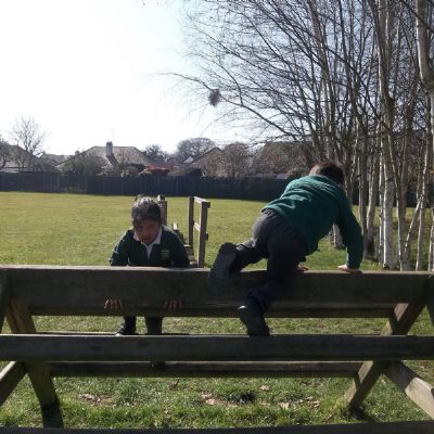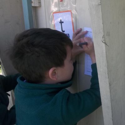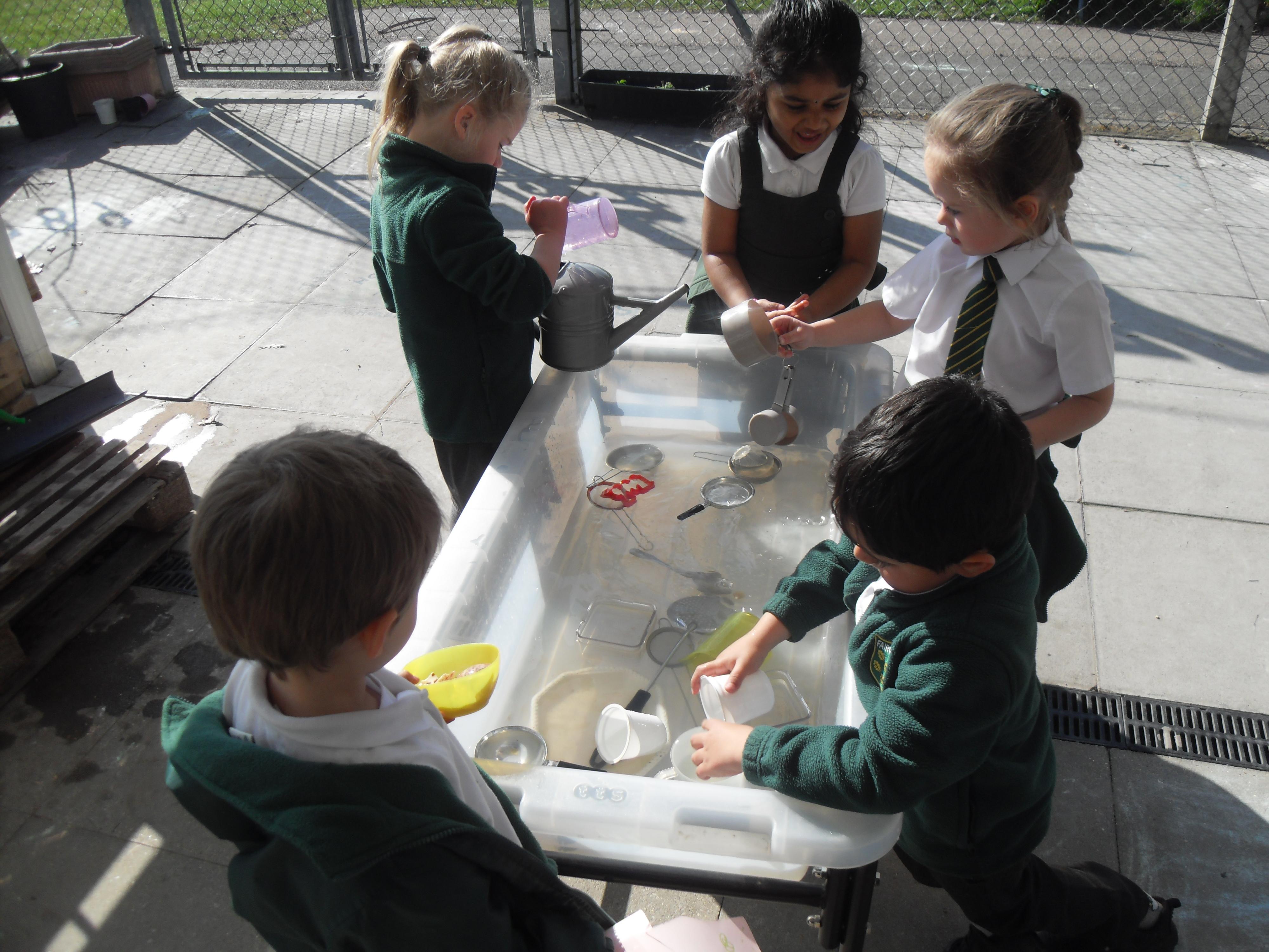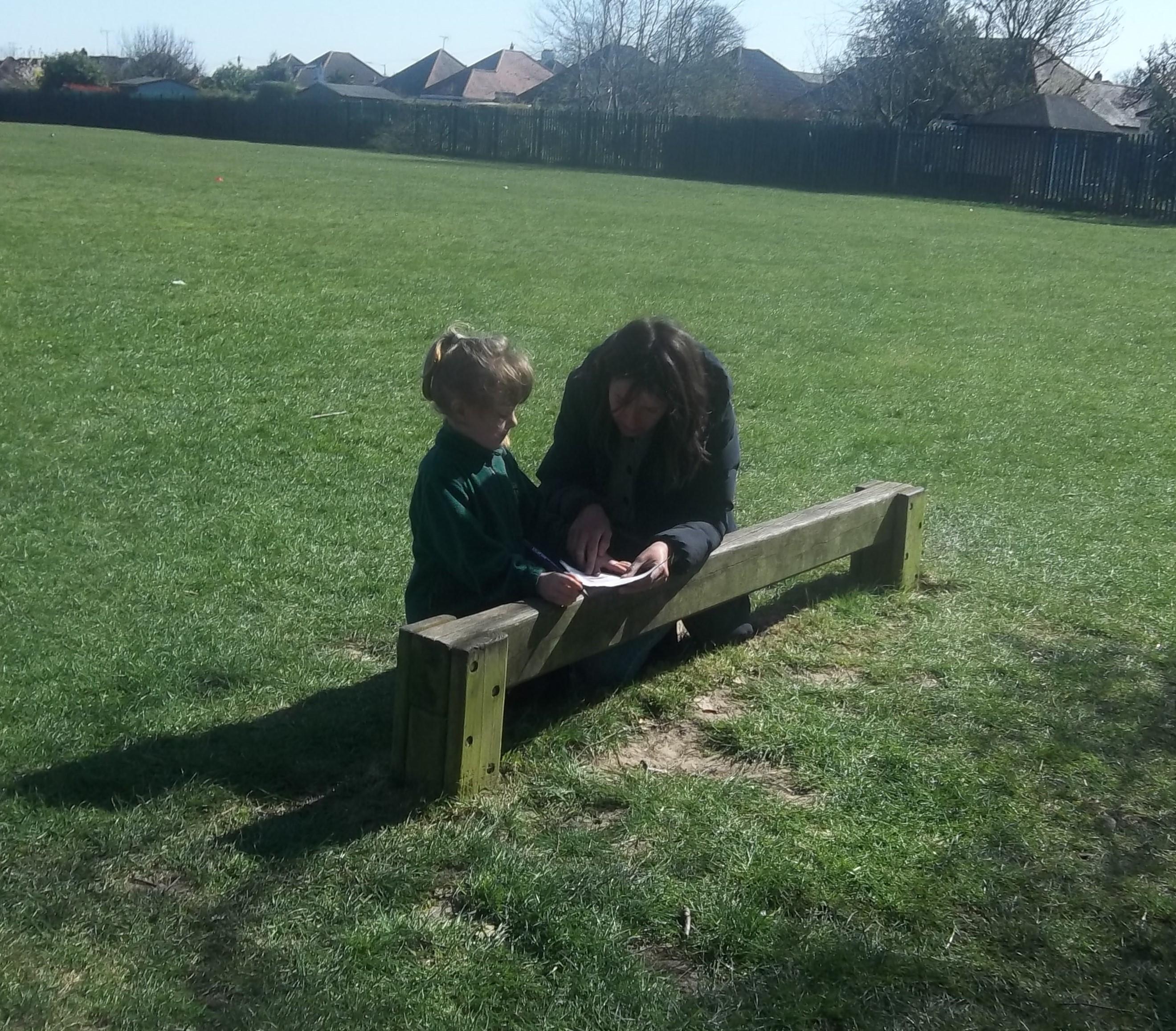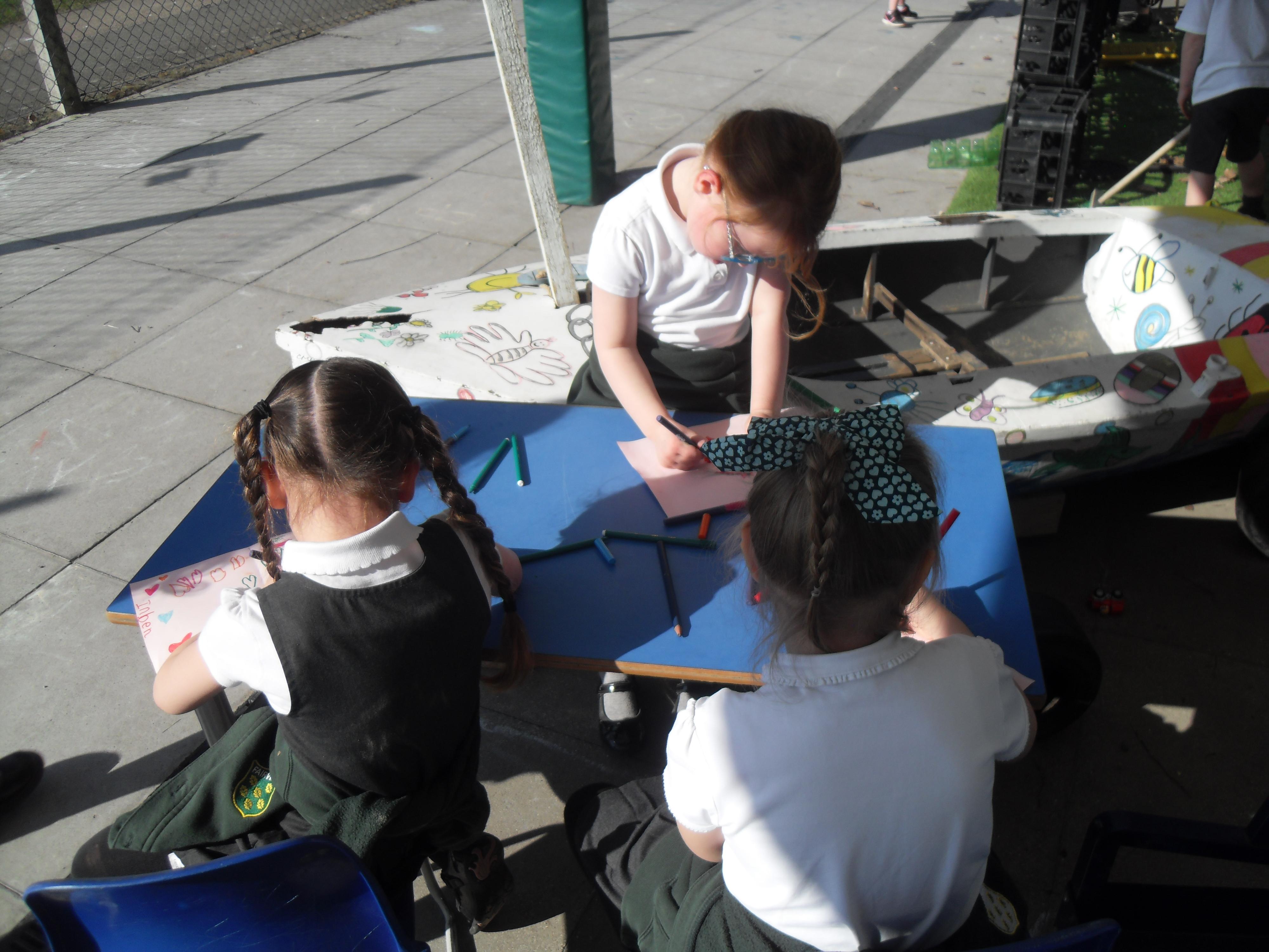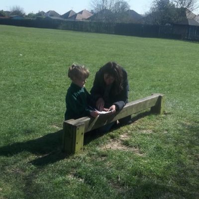 Reception have been making the most of the beautiful weather today and taking our learning outside!