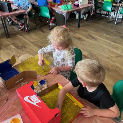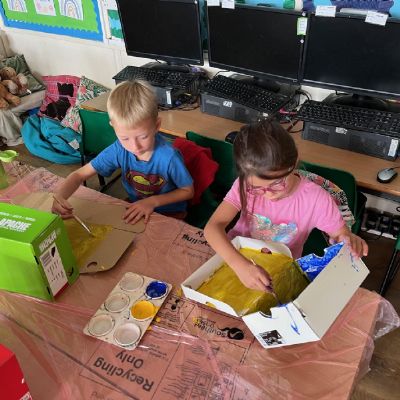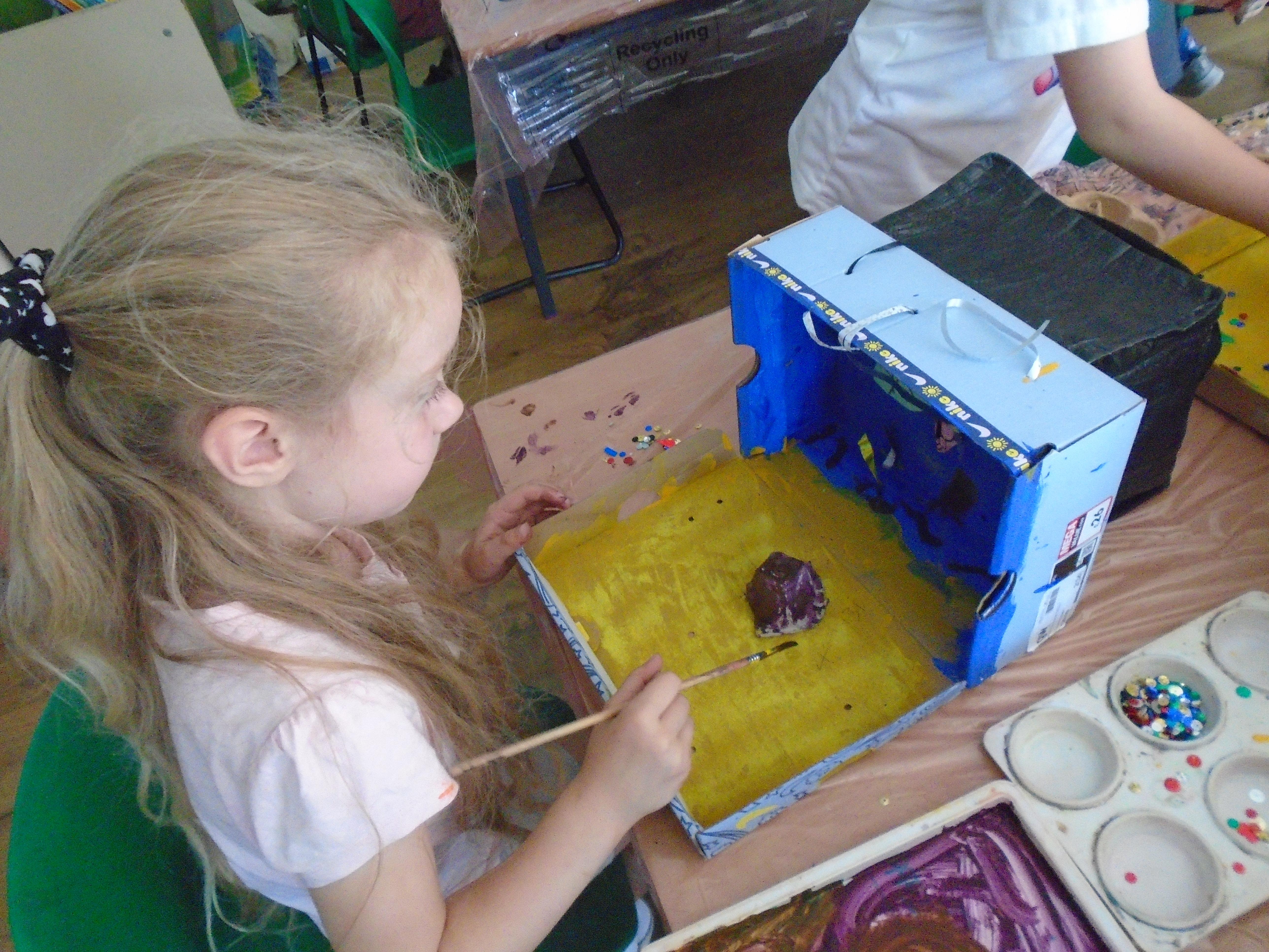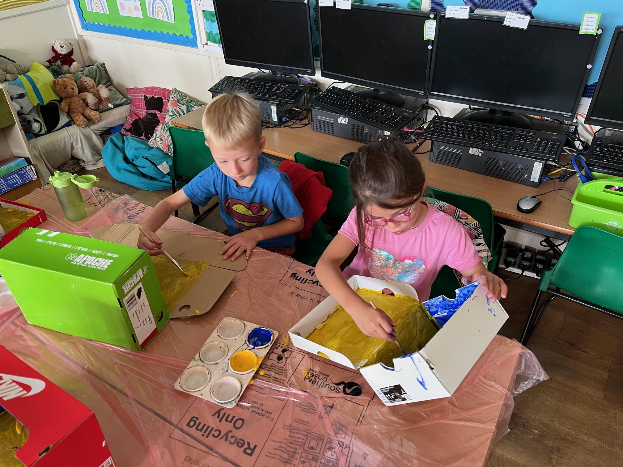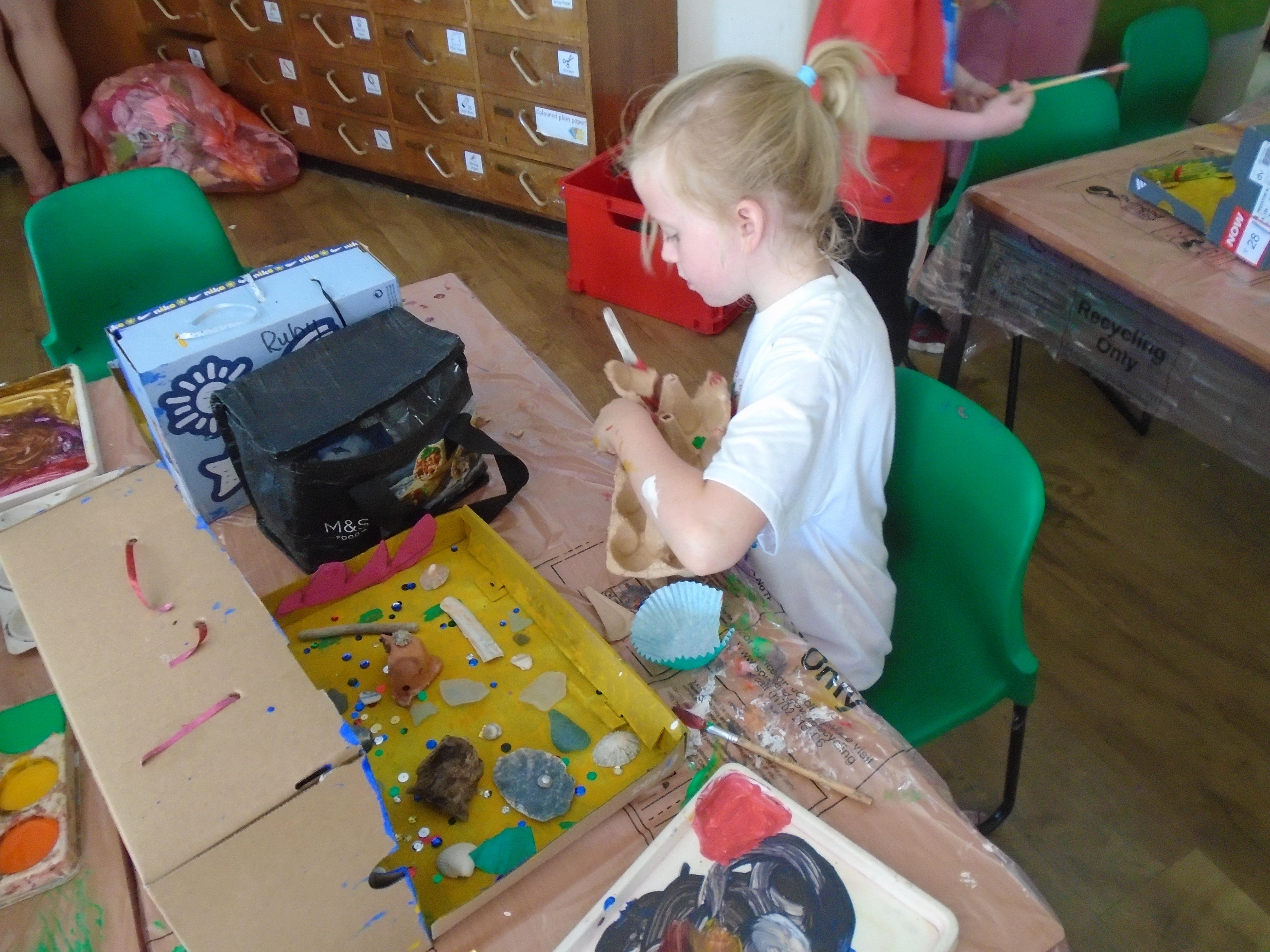 Year 1 had a fantastic time on our DT Days creating their own fish tank dioramas! They began by sketching their ideas, then brought them to life with paint, egg cups, card, and string to make 3D sea creatures and plants. It was a wonderfully creative task enjoyed by all!