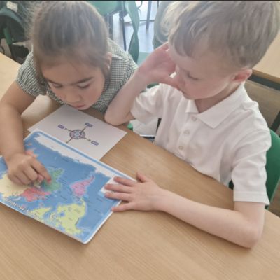 In Geography this half term we will be learning more geographical skills; we will be using directional language and comparing the UK to a non- European country. In our first lesson this week, we discussed what we knew about the points of the compass and described where many countries were in the world in relation to the UK. We then looked at Japan, in particular, and what was north, east, south and west of the country. We then took our new learning outside to direct our Learning Partner to different areas of our school.