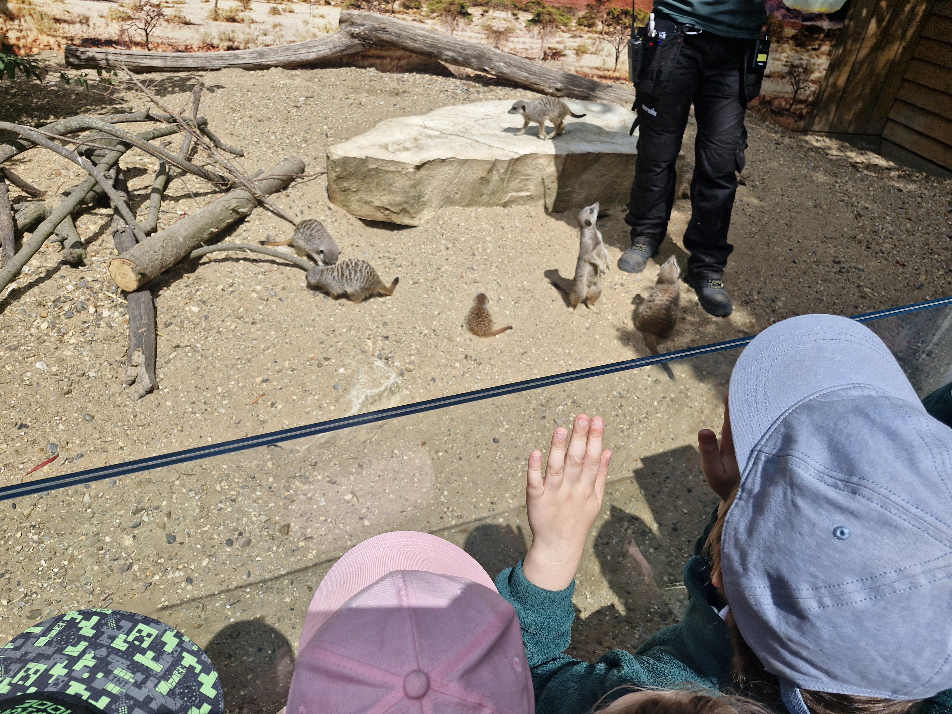 Luckily, the weather was on our side and lots of the animals were out of their indoor enclosures to greet us. We had great fun interacting with bugs and beasties, watching an animal training show and penguins and meerkats being fed. We even got to have our lunch in the sun, next to the pretty pink flamingos.