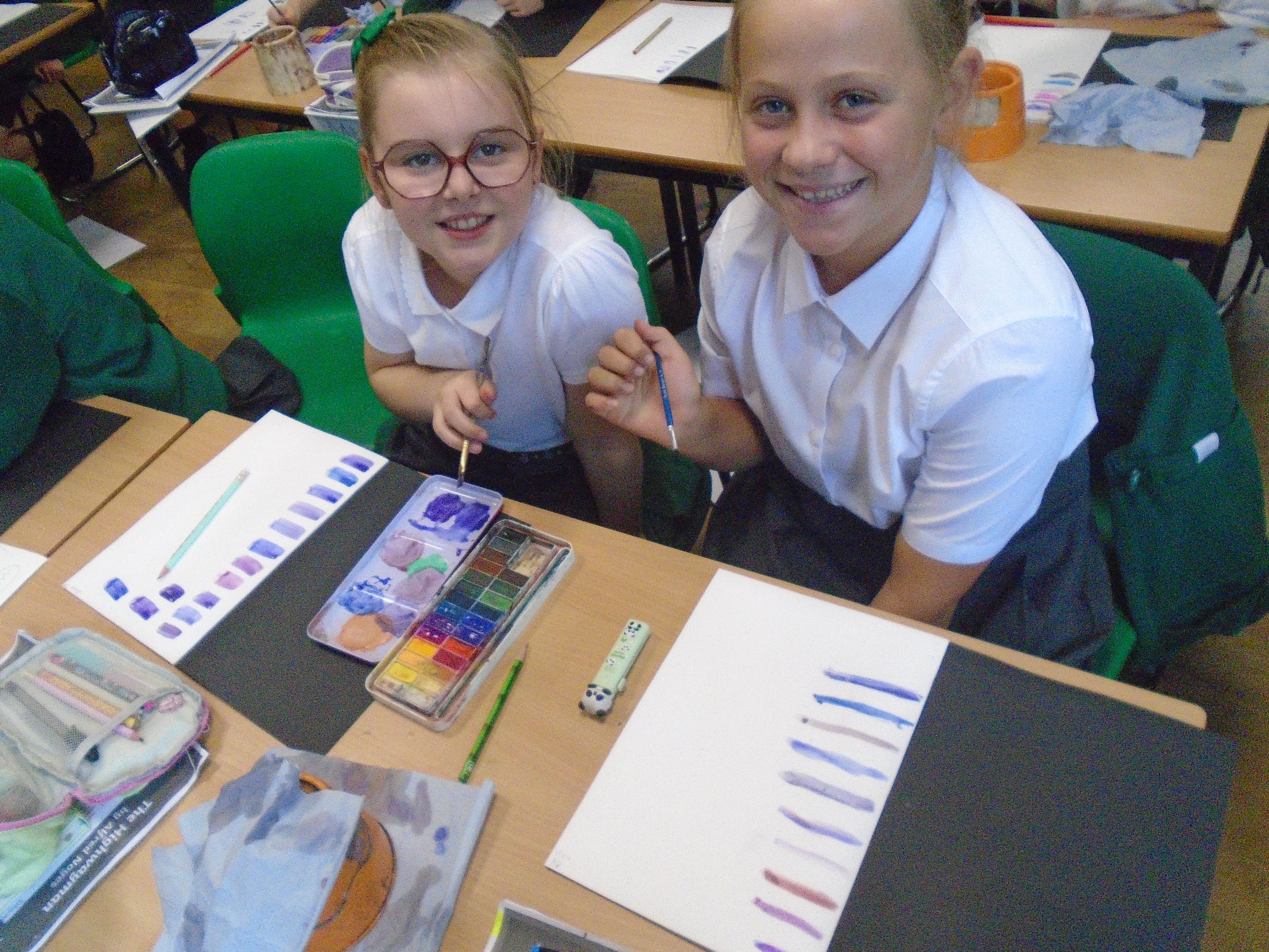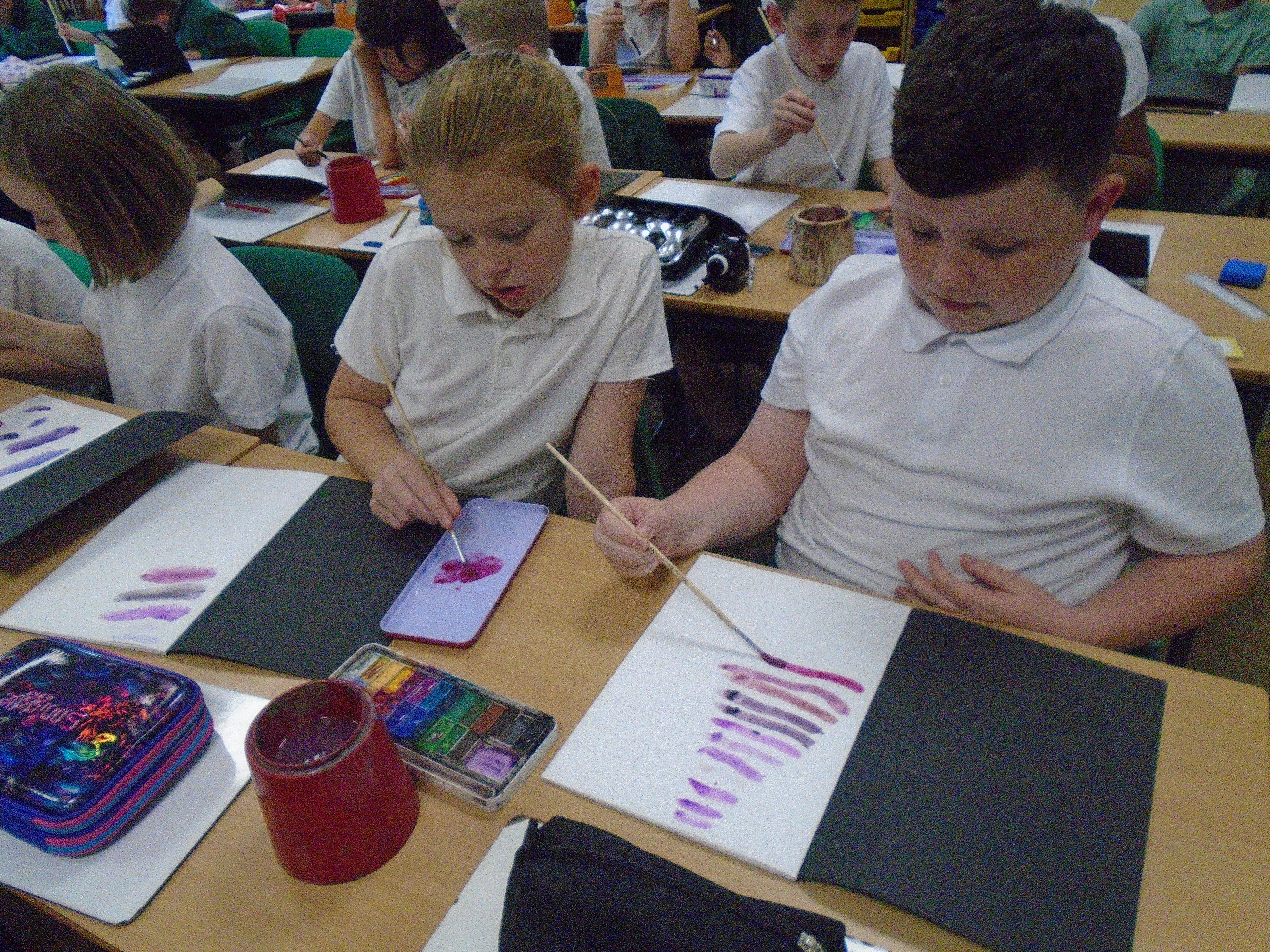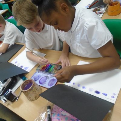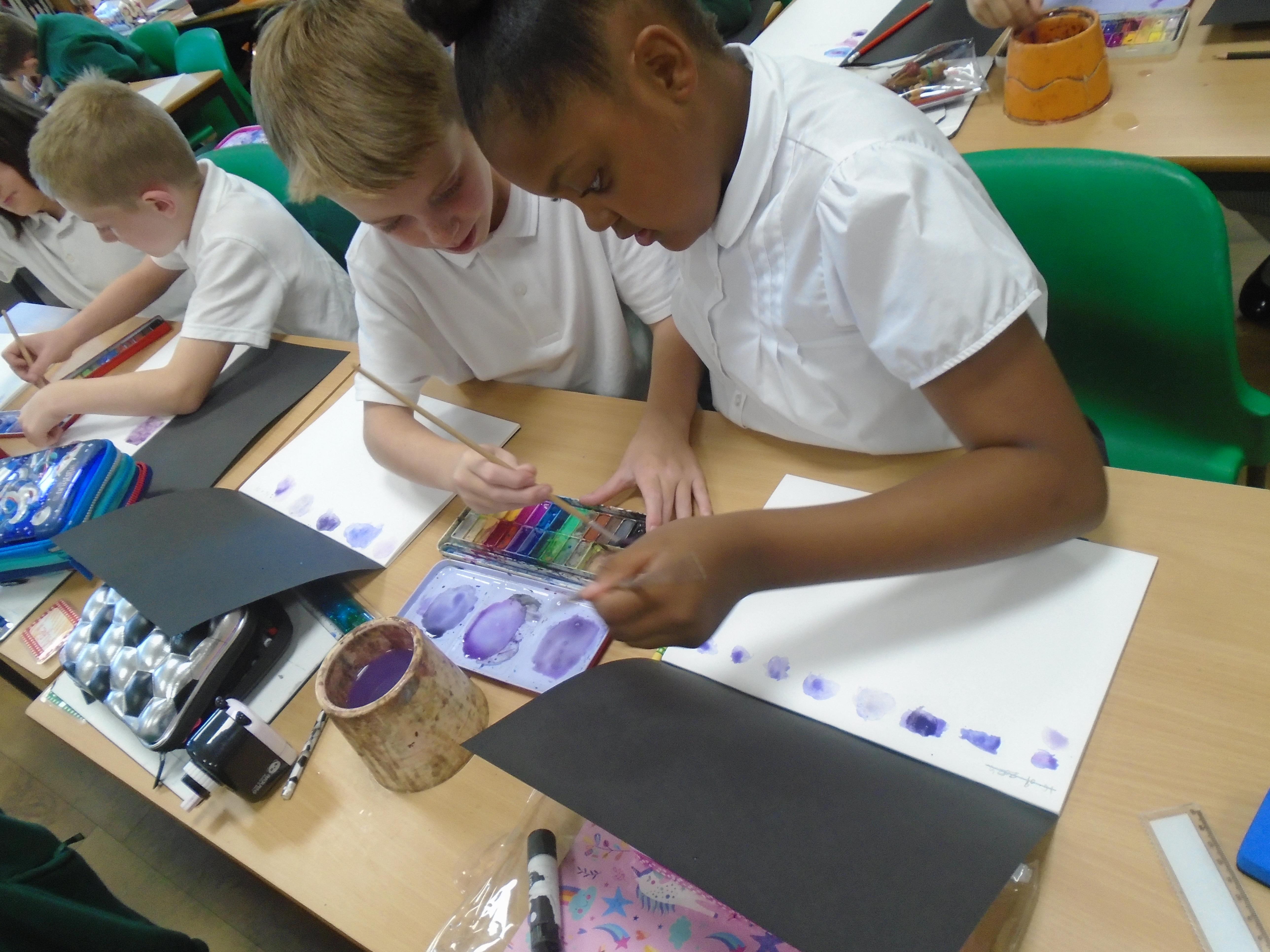 Year 5 have been exploring art inspired by their class text 'The Highwayman'. We have been creating landscapes depicting the opening scene from 'The Highwayman' - exploring how perspective can be used to create depth within an artwork. We explored mixing different colours using watercolour paint and applying this to our scenes. Keep your eyes peeled for the finished pieces in a few weeks time!